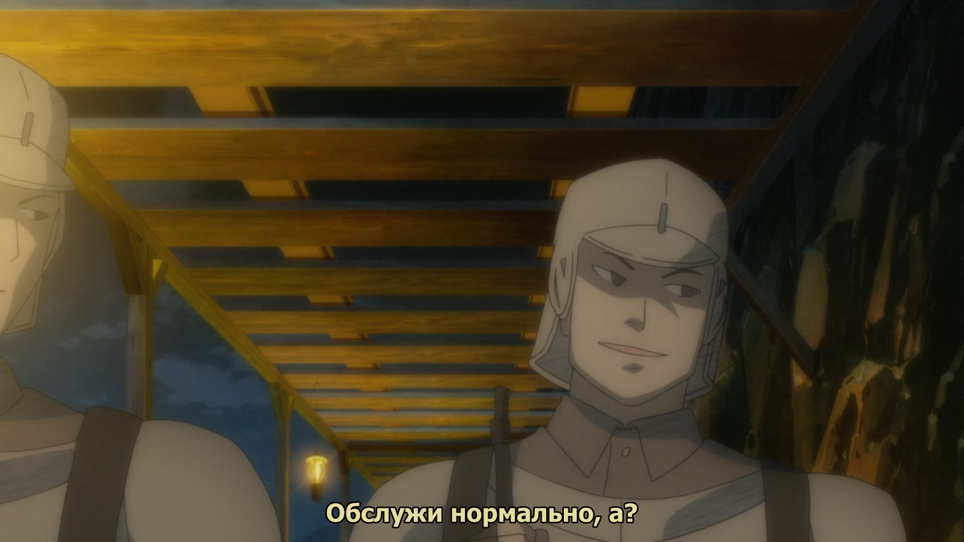 Удваиваю. Тоже горю с этой душной хуетени. И ладно бы просто пиздели, так они еще и пиздят с длюнющими паузами. В итоге инфы по лору ноль, только бесконечно смотришь на статичные картинки их ебальников/природы/домов. И это не умиротворяющая неспешность, как во Фрирен, это раздражающее растягивание хронометража.