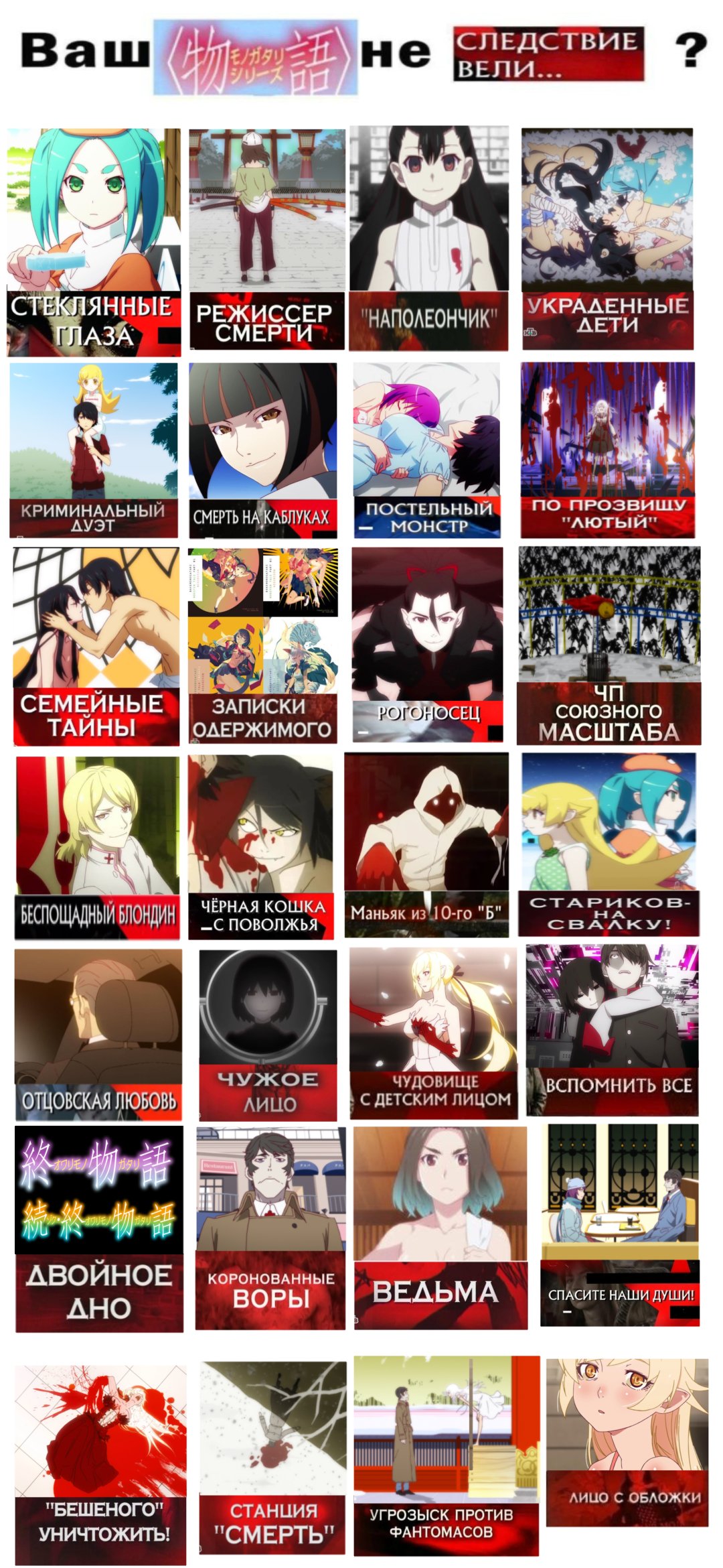Вот я баке-нисе-неко когда смотрел, прям кипятком сцался. От баке оче сильно, от нисе и неко поменьше, но тоже годно было. Что не опенинг, так шедевр, что не ендинг, так симфония нах. Герои объемные, окружение довлеет и управляет сюжетом. Второй сезон ощущался освежающе и тоже очень порадовал. Были тягомотные моменты, но ощущалось здорово и встроенно. Цукимоногатари ладно, история про один вечер буквально. Кизумоногатари тоже хорошо, пусть и в своем особенном стиле. Но вот дальше уже тягомотина какая-то пиздец пошла. Сам Арараги ещё генерирует нечисть и аномалии, из очка их достаёт что-ли? То классную комнату заколдовал, то в вампира блять превращается, о ужас, то вообще город превратил в зазеркалье всего-то встав не с той ноги. С Ойкурой очень скомкано вышло, прям как в меме refuses to elaborate leaves. С Шинобу непонятная хуйня и она сама задвигается на третий план.