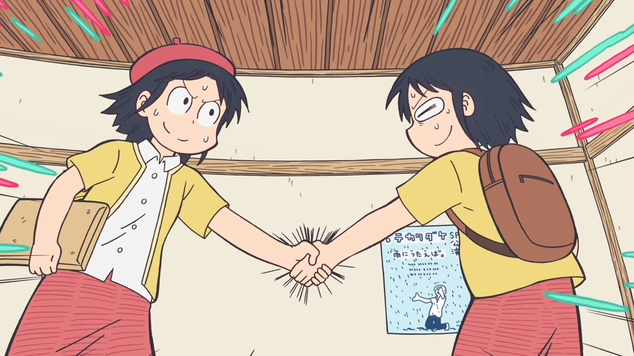 Пацан с батей - тут всё понятно, у бати очень интересные хобби. Сам лично больше всего ожидаю от пары школьниц, занимающихся обороной города - старшеклассницы это всегда топ. Потом ещё зацепила аутичная аутистка, которая в соло способна себя облапать по всем карманам и явно победитель всех тредов "что у вас в сумке". В соло заебошить такой экшон - это нужен талант. Это я хз что за жанр, это какой-то тактильный АСМР. Из остальных - две взрослые бабищи - нууу мейби. Про мангаку с редактором я вообще не вкурил, это какой-то локальный мангашный прикол с ментальным баттлом. Но посмотрим, что там будет дальше. Надеюсь, они там не будут все 13 эпизодов сидеть и давить из себя личинку.