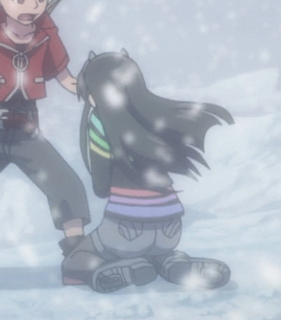 Kimagure Orange☆Road гл46/эп.46 18:34 - 18:39 Застряли на фуникулёре в горах, да ещё и окно разбилось. Температура внутри -5С. Keroro Gunsou c.261 11:57 - 11:58 Подкинули на MAL'е. Короткая но симпатичная сценка.