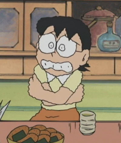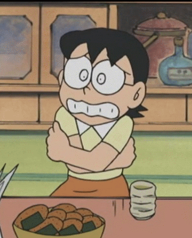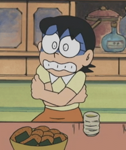 А вот что за этот период нашлось с Шизукой. 1,5 сценки. Doraemon (1979) эп.857 снова мёрзнущий нобита... Doraemon (1979) эп.862 То ли мёрзнет, то ли боится. Скорее, первое.