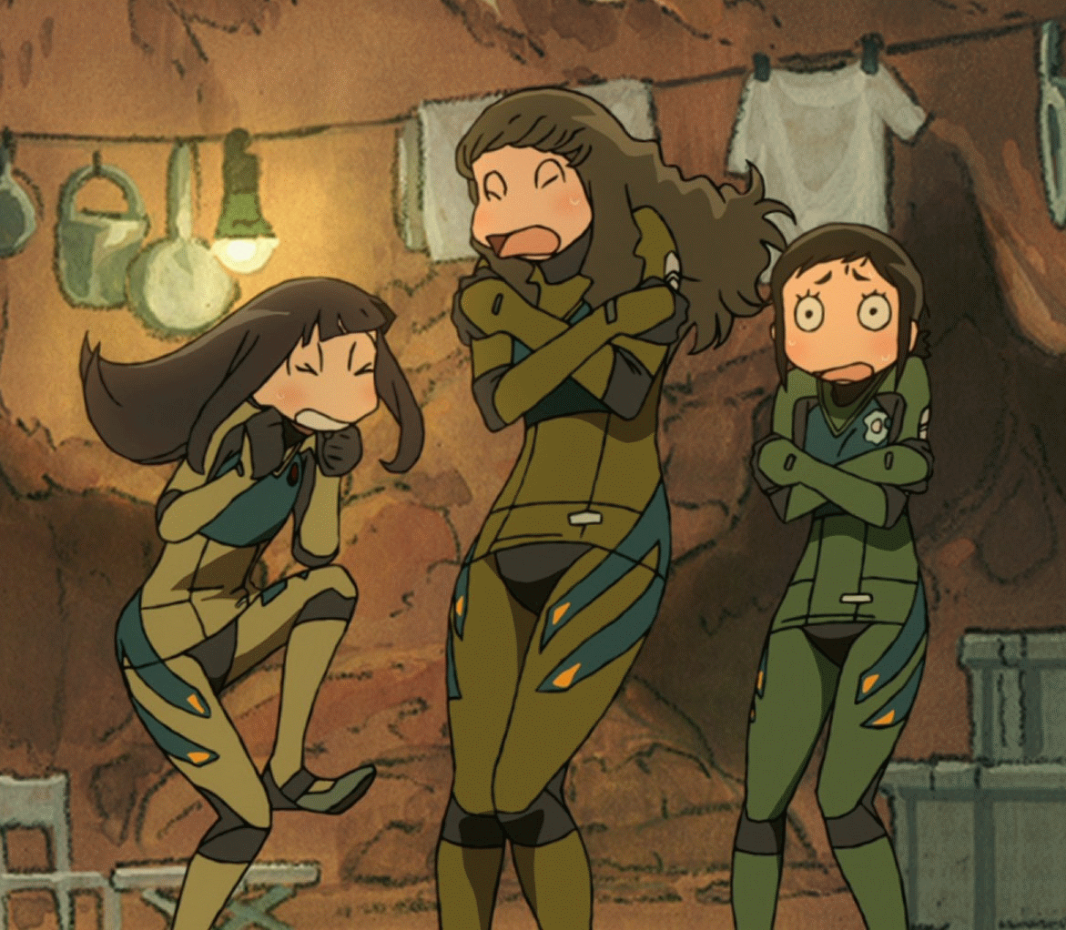 NEW GAME!: Watashi, Shainryokoutte Hajimete na no de... OVA 12:51 Девки бегут в купальню и жалуются на холод. Очень короткая сценка. В купальне на 15:03 одна из них привстаёт попой к зрителю и мёрзнет пару секунд.