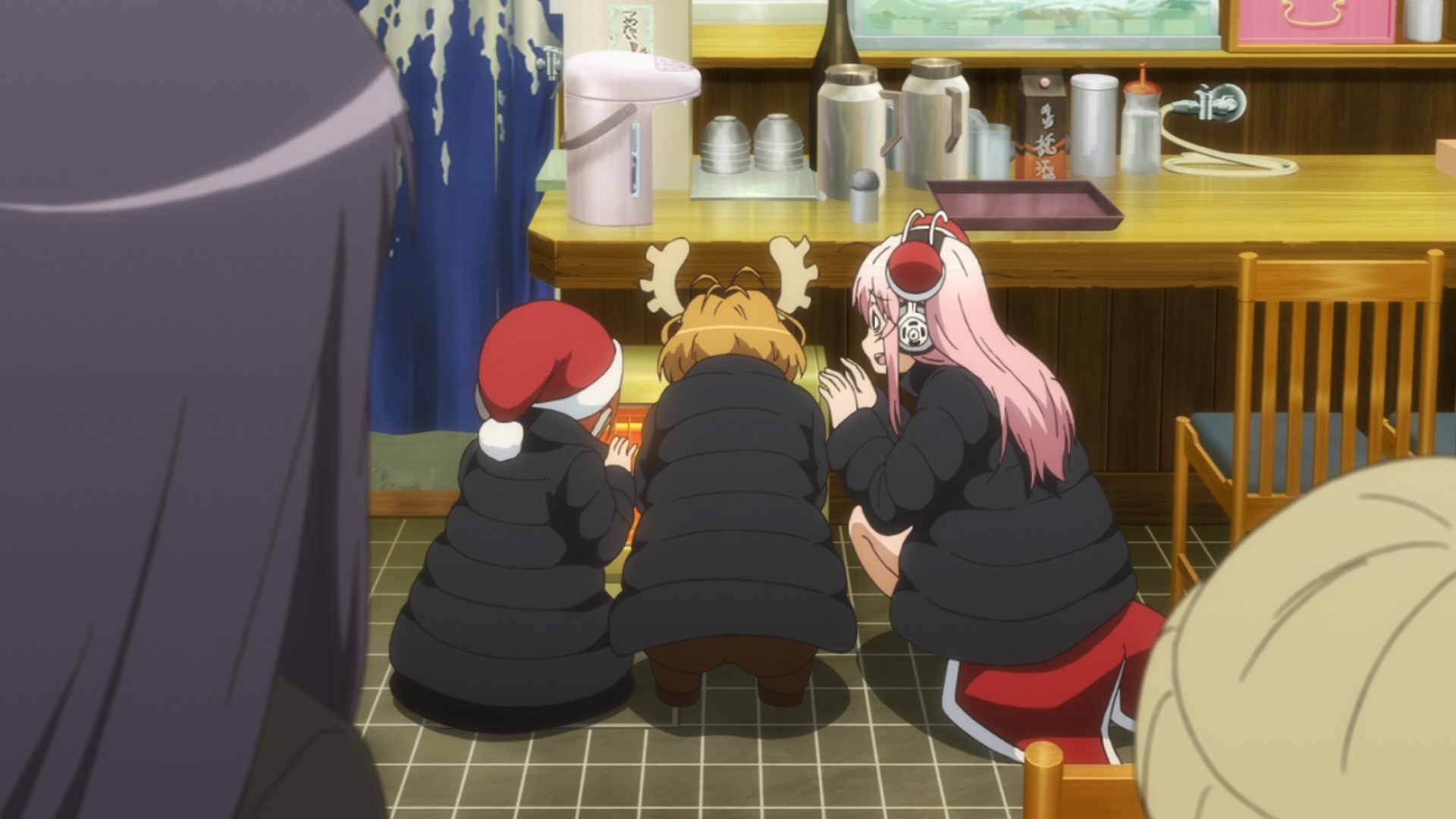 Отсмотр обоччамы начал приносить дивиденды! Obocchama-kun эп.166 04:17 - 04:26 Пережидает пургу в пещере. Obocchama-kun эп.204 08:00 Чихает и ёжится, после чего батя накидывает на её оголённые плечи свой пиджак (You Must Be Cold ).