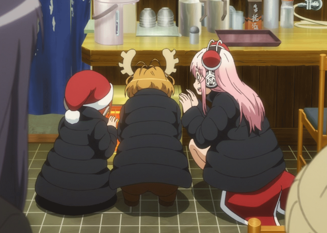 Подгон с MAL'а K-On! эп.13 вторая сценка очень известная, стопудово находили уже. Seiken Tsukai no World Break эп.11 Мёрзнут у камина после разморозки.