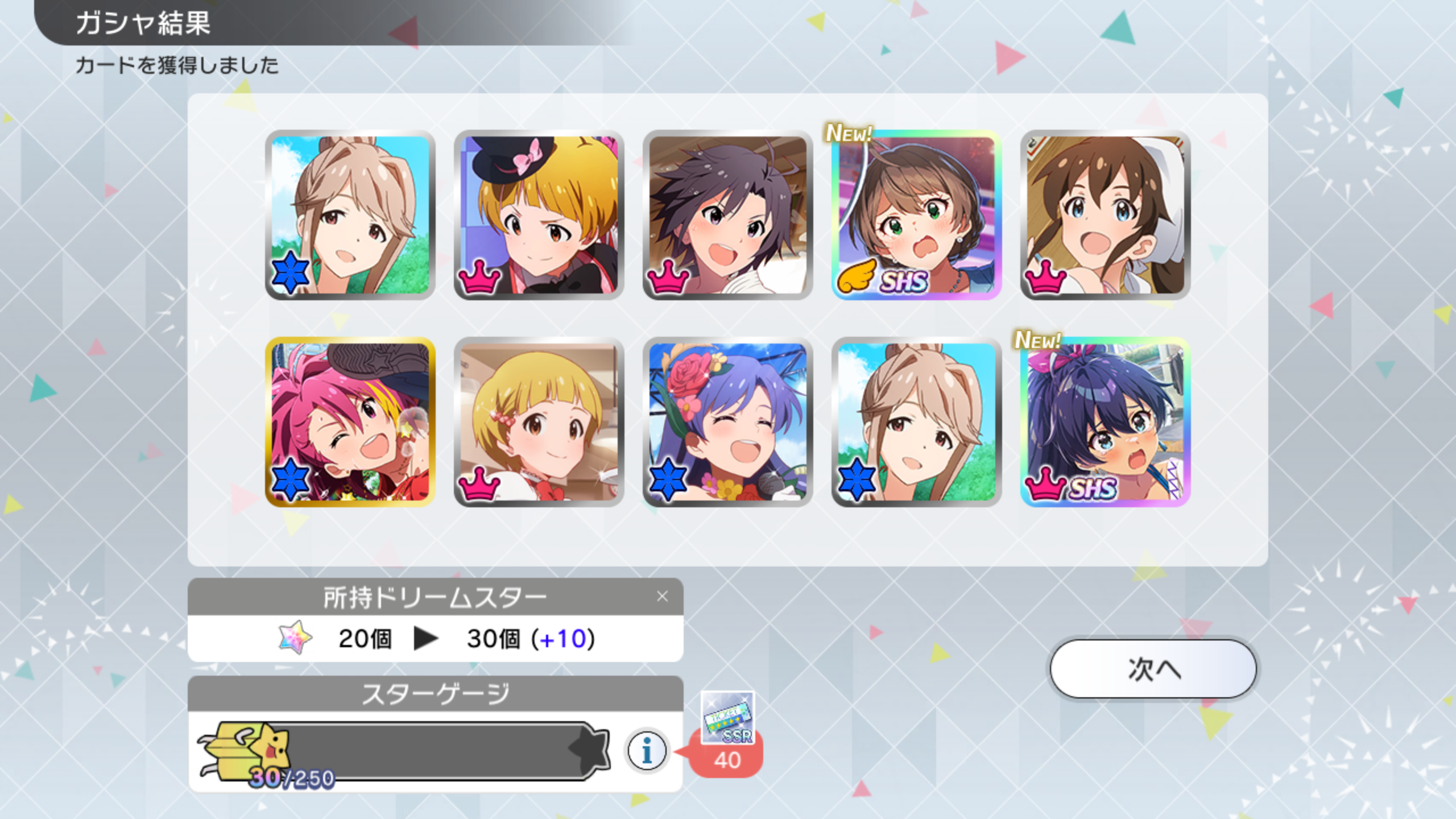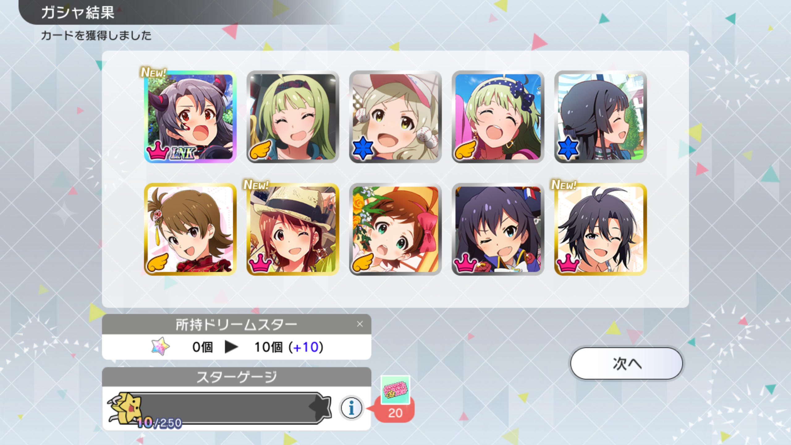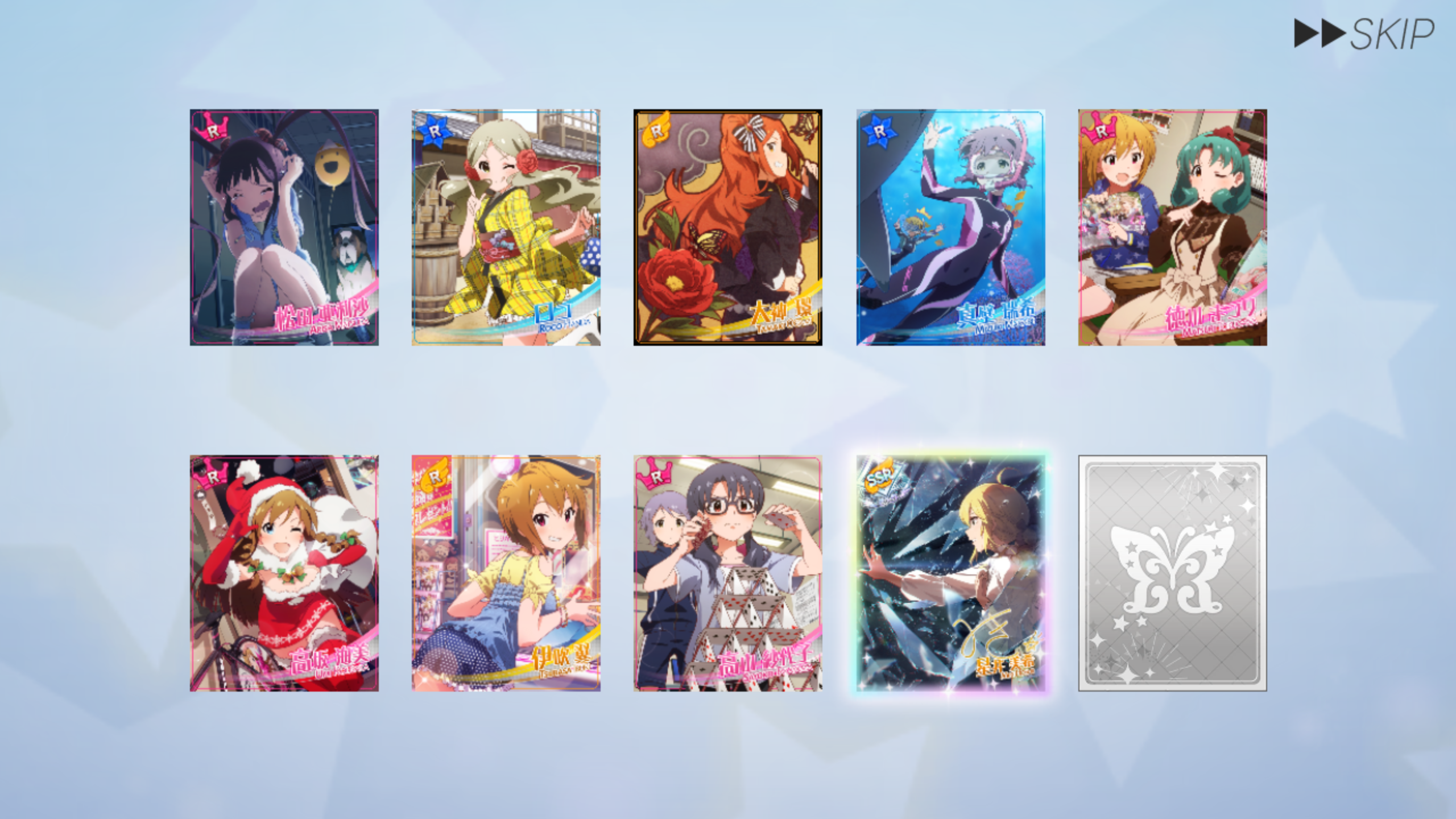 А я ведь хотел Макото... Ну ладно, тоже неплохо. Вовремя остановился, а то что-то многовато небаннерного шлака с СР гачи падает, для таких-то вероятностей. Первый раз пробовал и может быть последний, лучше на ССРки буду копить дальше.