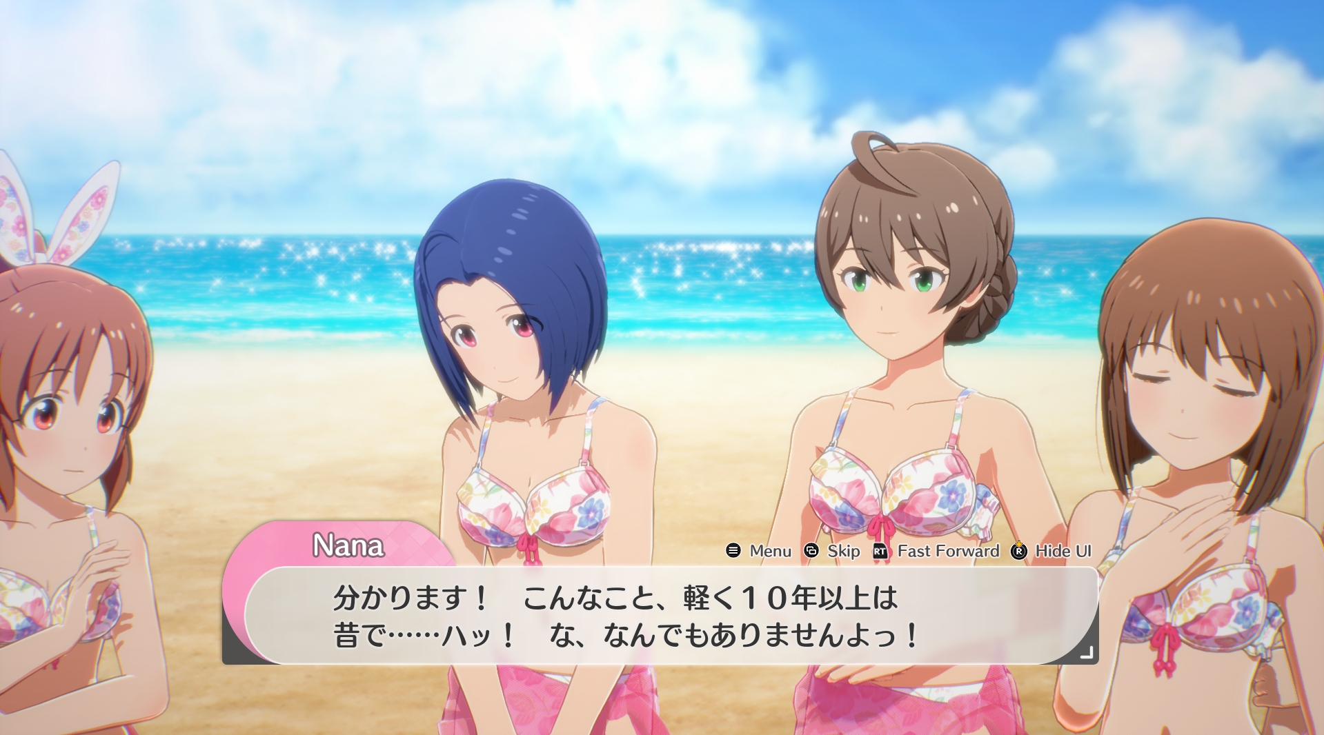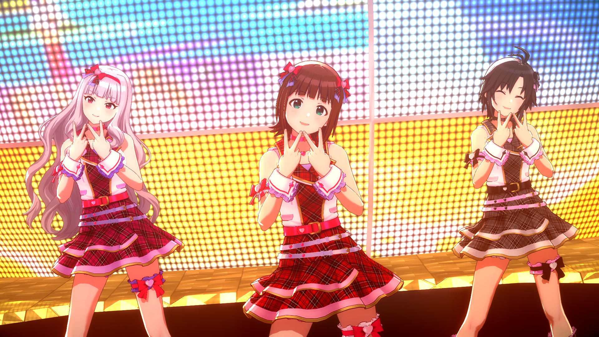 Не тащит Ничика одна песни своего юнита, не тащит. Ее звонкого пронзительного голоса недостаточно. Нужно чтобы Микото оттеняла, добавляла глубины, и на мой взгляд она в большей степени придает характерное кейпопное звучание, которым хорош юнит. Классная у нее сэйю. Хотя обе умницы, ни с кем на слух не спутаешь. Разлучили хоть ненадолго. Модельки прикольные, более детализованные и обмазанные шейдерами. Лица и мимика немного отличаются от игровых, и не сказал бы что однозначно в лучшую сторону. Потрудились даже местами переработать хореографию под ручной микрофон, но стоило ли? В целом неплохо, мне, как ничего не ожидавшему халявщику, понравилось. В который раз восхитился сольной песней Ханы.