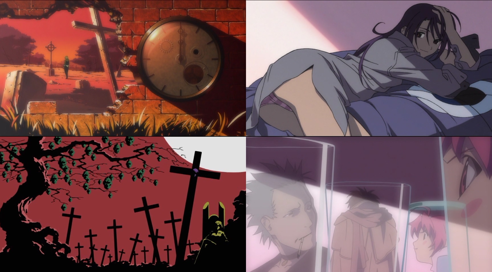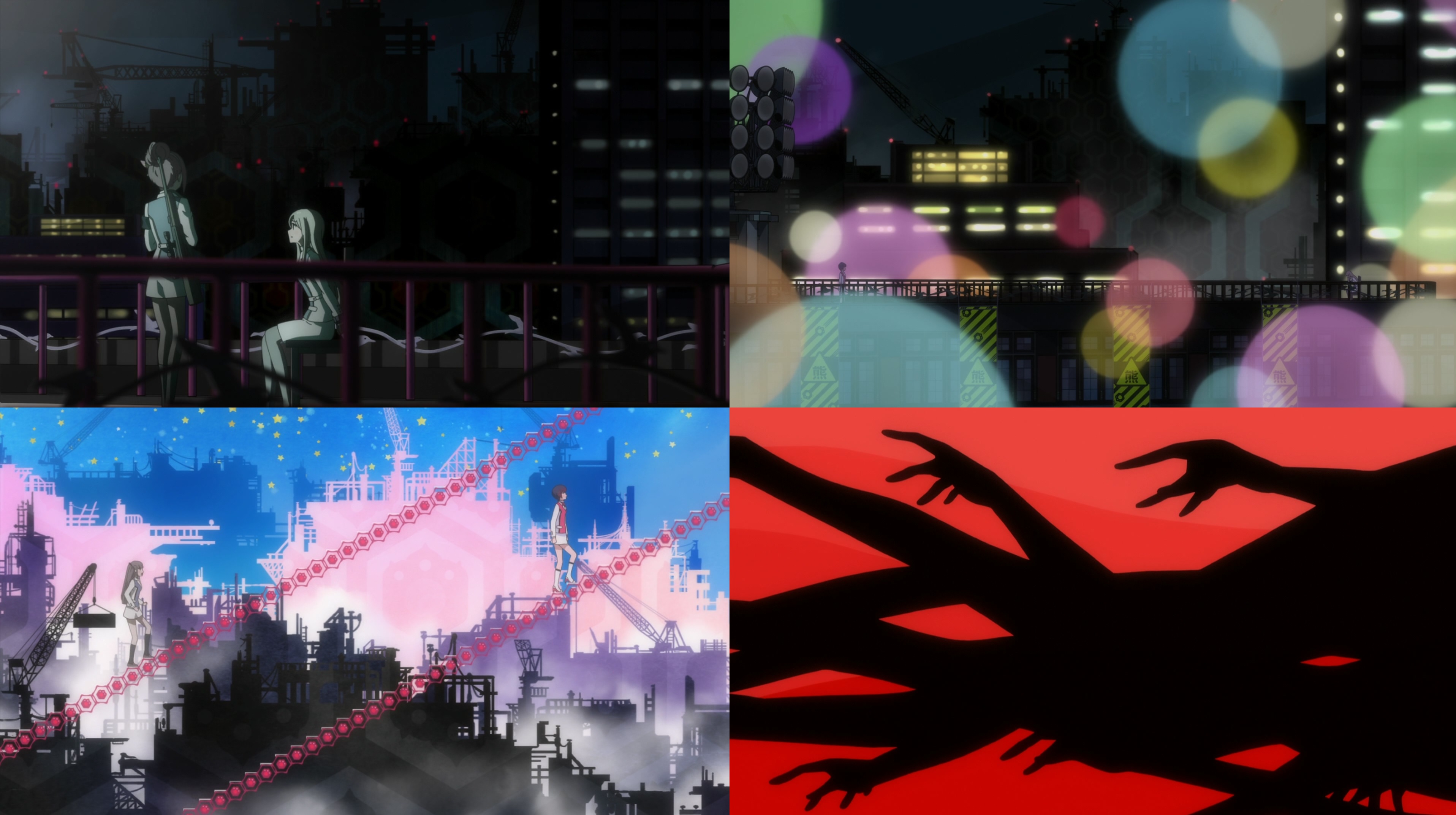 Сэймэй Кидокоро вроде и не так много работал с шафтами - эпизод Мадоки, пара в мекакусити акторсах, ессистент режиссера фейерверков - однако влияние их стиль на него оказал заметное. Но не только их. Как минимум такое же на него явно оказала работа ассистентом режиссера Hells. Я бы сказал, что его Heion Sedai no Idaten-tachi это пополам Hells и шафта, ну а так как хелс и сам по себе визуально впечатлял, смесь получилась интересной.