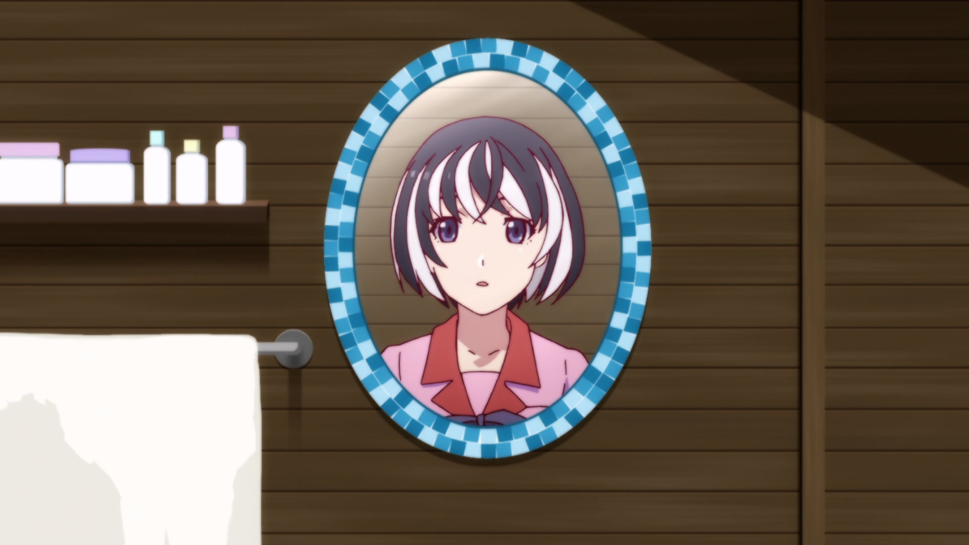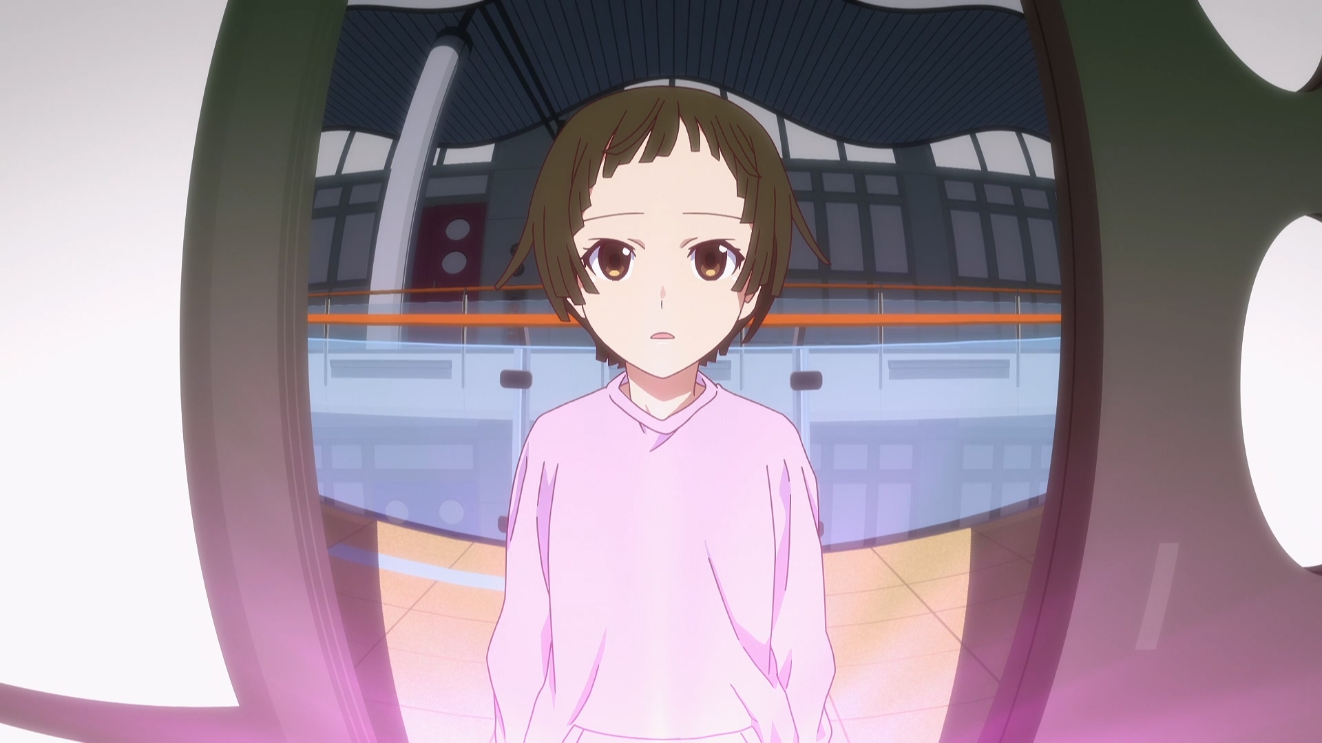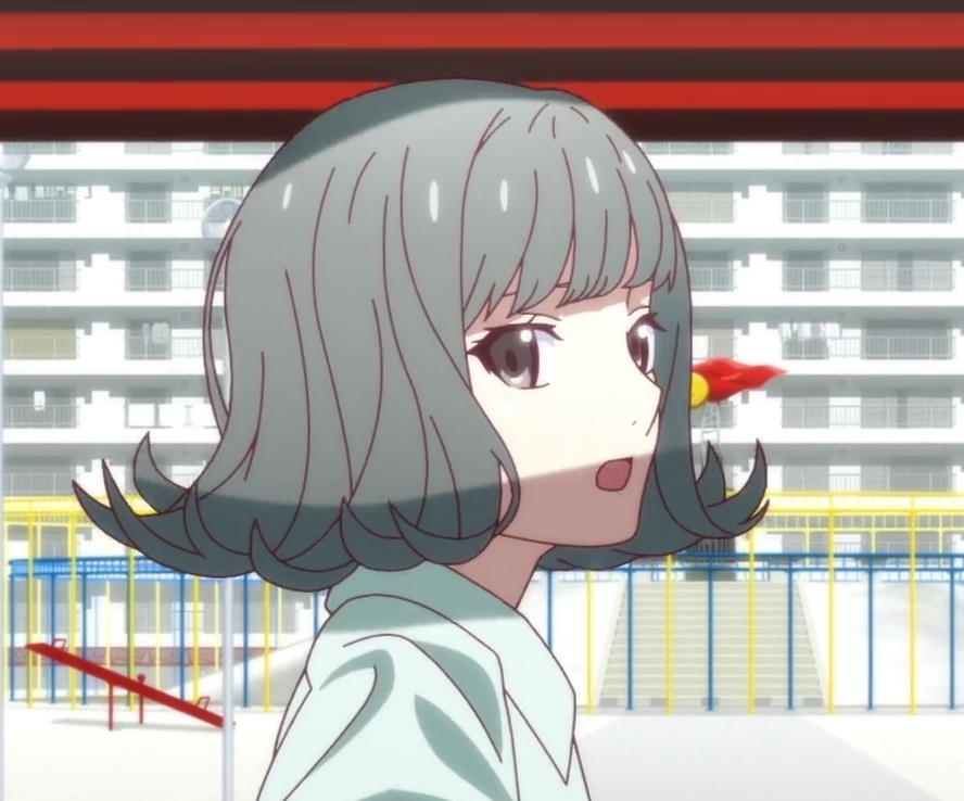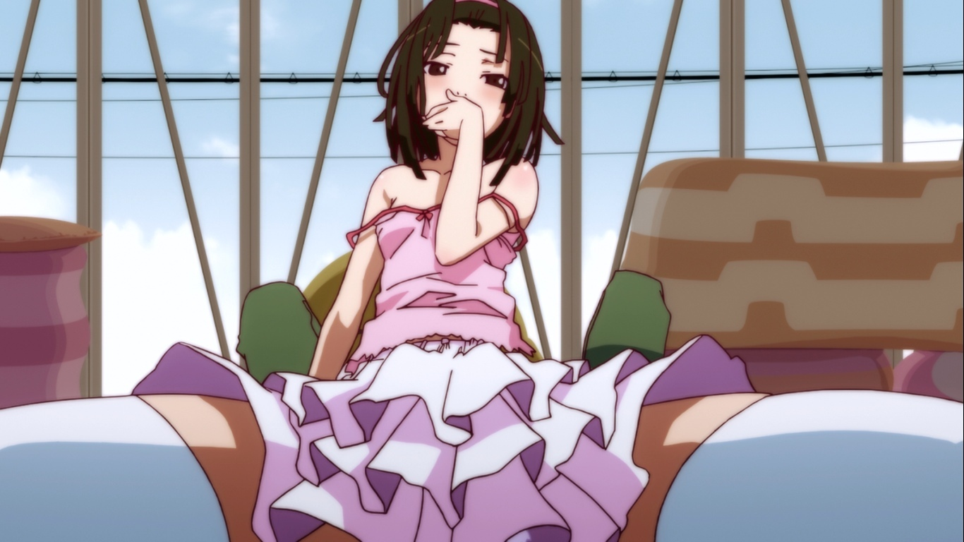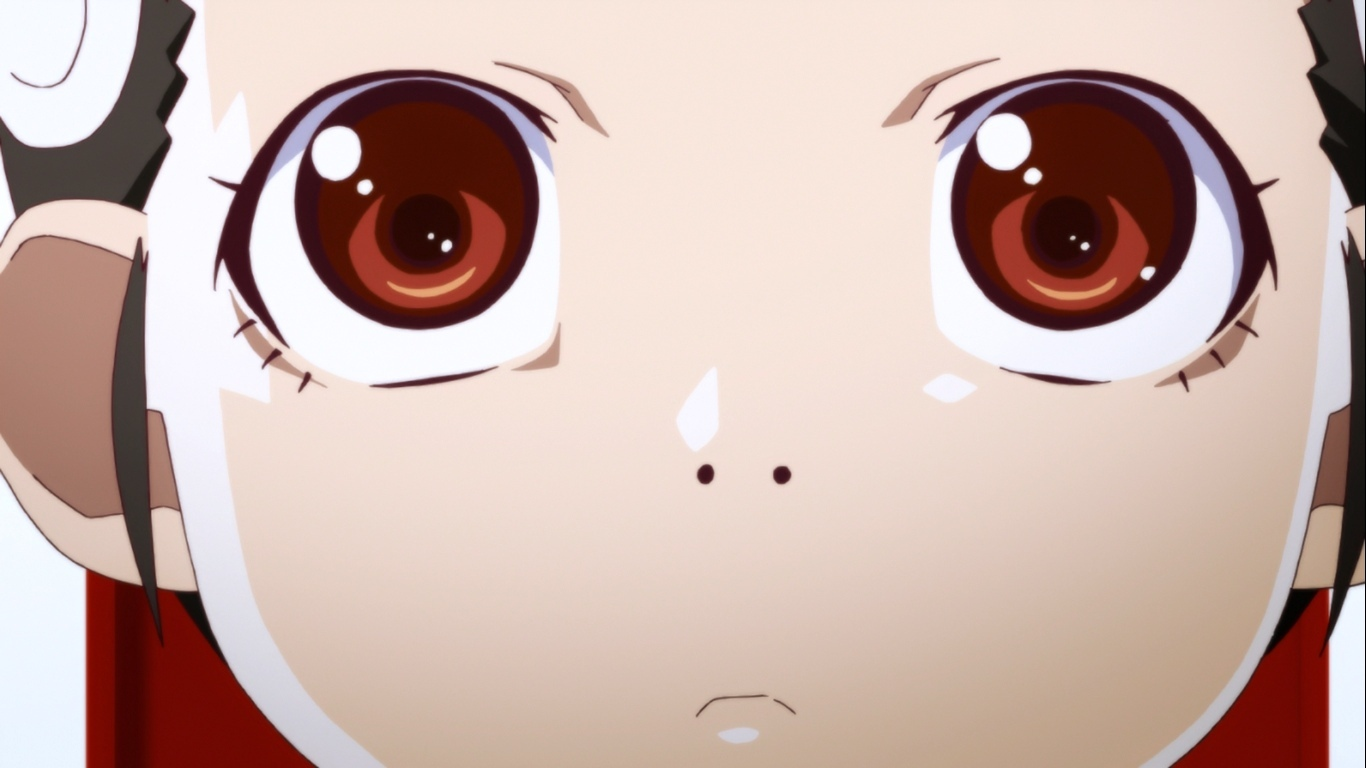 И да, кстати о Сакура трик - одним из тех бывших шафтовцев, которых Ишикура привлек, был Omata Shinichi, так же известный как Мамору Хатакэяма. Он уже сам потом режиссировал Shouwa Genroku Rakugo Shinjuu, Кагую-сама, овашки и мувик черного дворецкого и недавний Undead Girl Murder Farce для которой опять таки пригласил сразу кучку шафтовцев, в частности того же уже много раз упомянутого Такеучи и Такаши Кавабату. Вот Андед гёрл наиболее потенциально интересна в этом плане, но сам еще не добрался, так что с уверенностью не скажу. Хотя в той же Кагуе тоже многое можно заметить характерного и я не про референсы на гатари, а про комедийный тайминг и лейауты, просто не так сильно это все в глаза бросается. Ну и раз уж упомянул Кавабату - он тоже такой шафтовец, много работающий вне шафта, хоть никогда со студией и не рвавший. Из самостоятельных его работ есть только Hidan no Aria AA - я не смотрел и не слышал ничего или не запомнил, но он вообще в этом вот около-шафтовском кругу находится и его часто зовут на тайтлы над которыми другие шафтовцы работают или которые как то каким то боком к этому стилю имеют отношение, так что если посмотреть его работы - там много интересного можно найти. В первую очередь я бы упомянул Shoushimin Series. Интересный тайтл, его, конечно, нельзя отнести к "шафтовским", на первый взгляд даже может показаться что то, как он имеет дело с этой диалого-ориентированной психологической историей - прямо противоположен гатаривскому, с упором на гиперреалистический визуал, вместо авангарда, но в основе очень много сходств - использование негативного пространства, "плоская" композиция дальних планов, жесткий блокинг, перекрытый передний план, отражения и т.п. Не прямое влияние, а скорее одни и те же истоки.