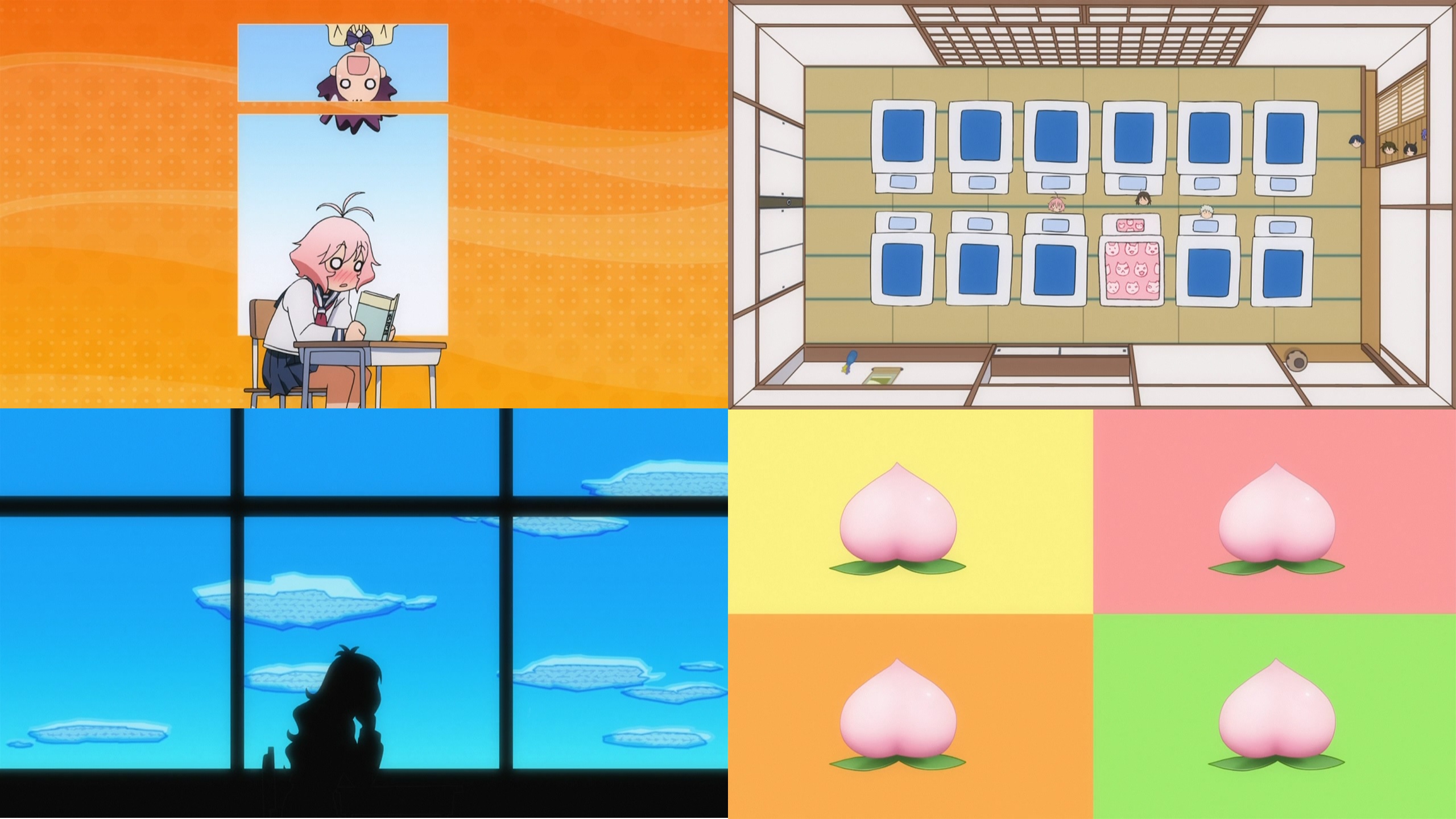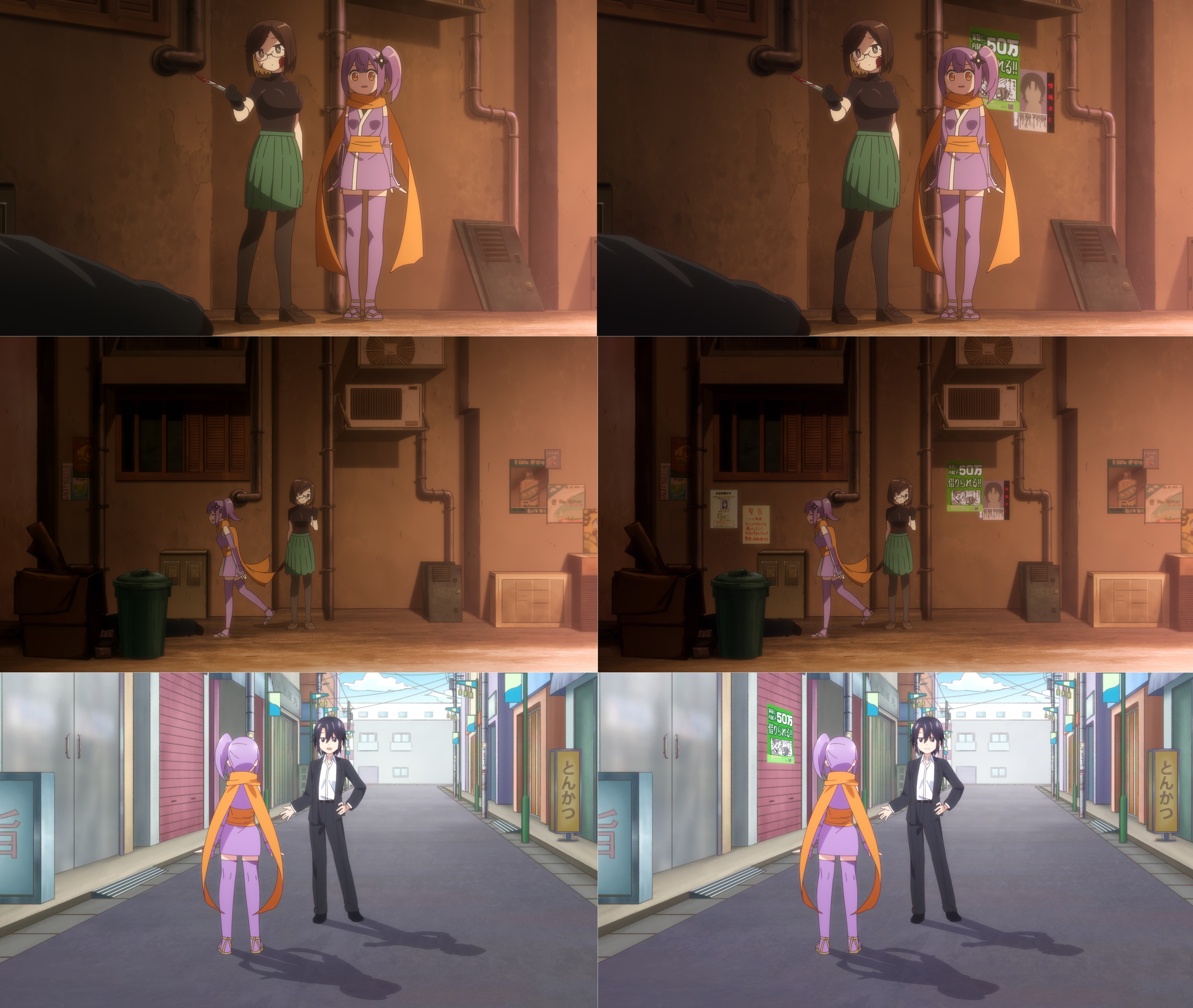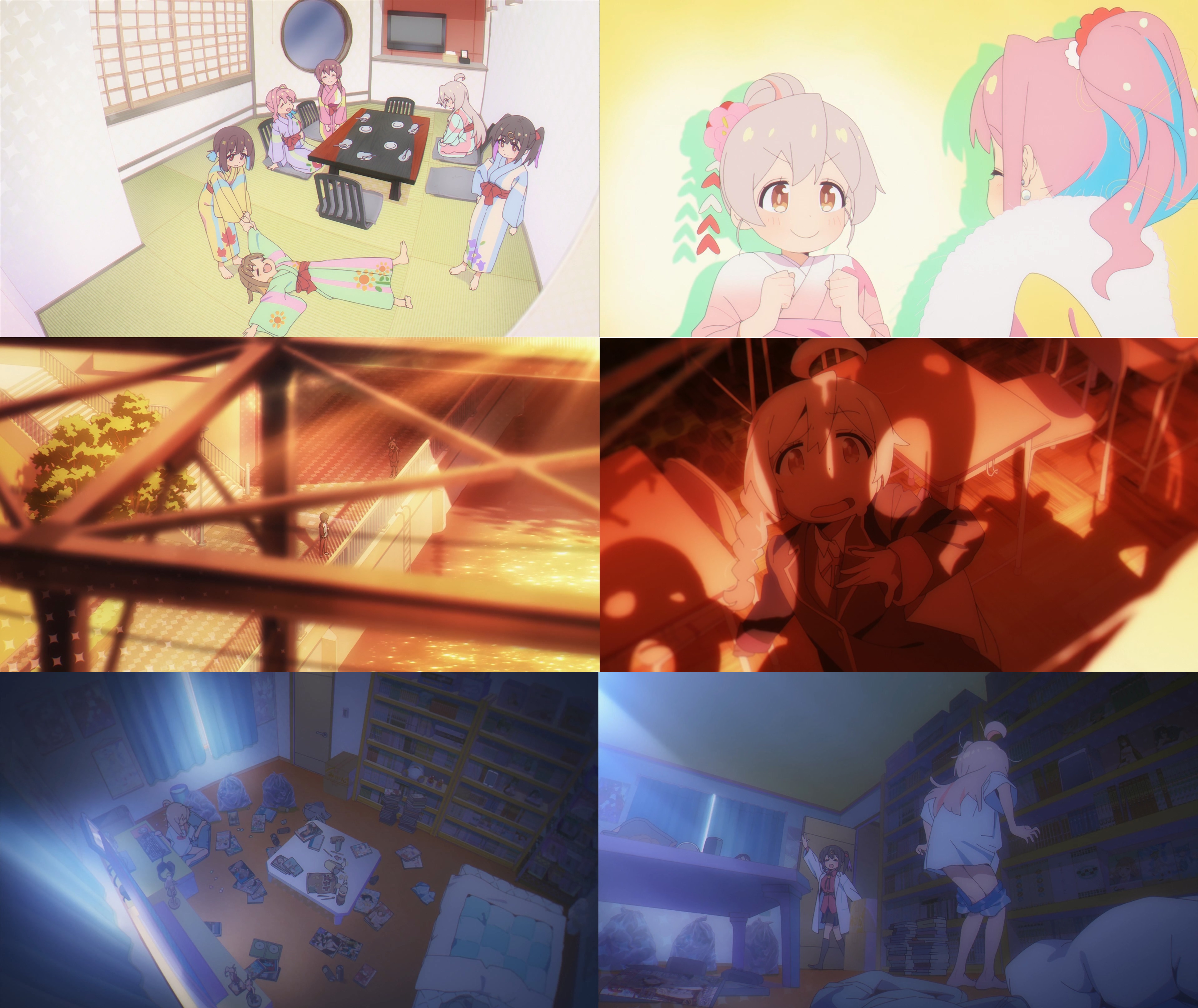 Где то в 2015ом в свободное плавание уходит Наоюки Тацува, пожалуй один из основных шафтовских режиссеров с конца нулевых, особено выдвинувшийся в десятых. Часть секонд сизона, соримачи, нисекой и т.п. В основном на комедиях специализировался. К сожалению его самостоятельная карьера такими громкими названиями не блещет, но кое на что обратить внимание можно. Я бы выделил Warau Arsnotoria Sun! - не сказать, что он прямо сильно шафтовский дальше первого эпизода, который Тацува бордил сам и в котором прямые референсы на гатари, но тайтл в целом неплохой, незаслуженно недооцененный. Там странный посыл изначальный и второй сюжетный план с рыцарями-крестоносцами, которые девочек магичек ищут, чтоб всех поубивать нахуй эта сюжетная линия так никогда и не соединяется с основной. Как по мне это довольно интересный ход, вносящий необычное для жанра напряжение, подчеркивая хрупкость этих повседневных моментов из которых тайтл и состоит. Но ожидавшие мрачного твиста зрители бомбанули Короче тем, кому нравятся слайсики про чаяпития и маленькие приключения милых девочек(в основном чаяпития) - очень рекомендую. Ну и еще про милых девочек это мувики/спешлы Oomuro-ke - спинофф юру юри. Тут нет никакой бросающейся в глаза шафтовости, но есть такая подспудная - в том же тайминге или например в работе с цветом, когда у каждой локации свой цветовой код. Да и в любом случае опять же просто отличный очень милый слайсик. Еще от него есть выходивший в один сезон с арсноторией исекай с рабынями собаками, но это такое - там в первом эпизоде можно найти кадров 5 интересных, но это опять же археология, причем на этот раз в куче навоза. Дальше первого эпизода я не углублялся. Зато вот на анонсированный недавно Seitokai ni mo Ana wa Aru! я бы обратил внимание - там не только сам Тацува, но и один из самых ярких шафтовских аниматоров Рю Имамура и вообще по своему духу тайтл вроде как раз подходит, чтоб наконец в полной мере реализовать свой потенциал. Они с Имамурой уже делали PV к самой манге и вышло прикольно - вембрелейтед.