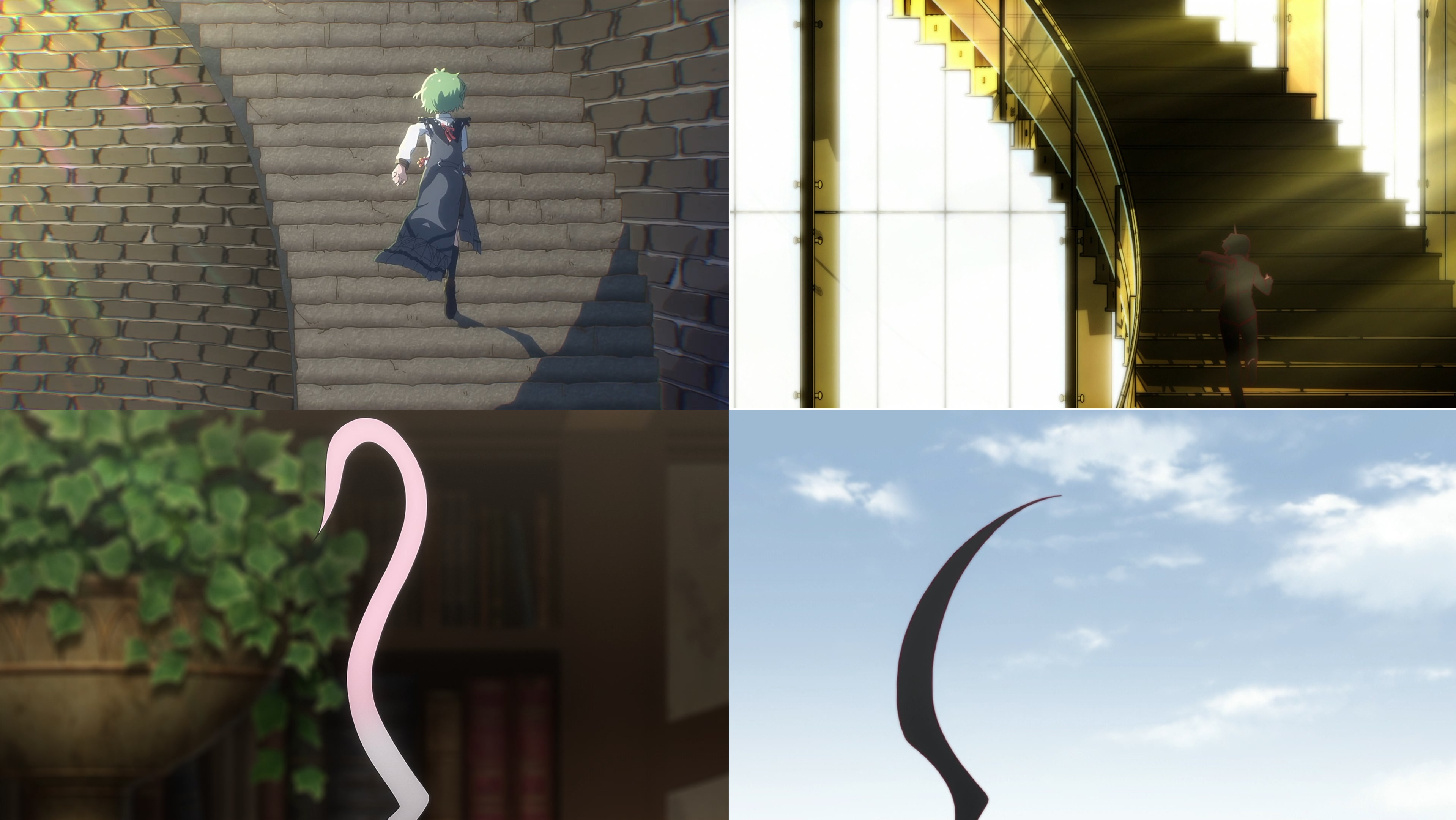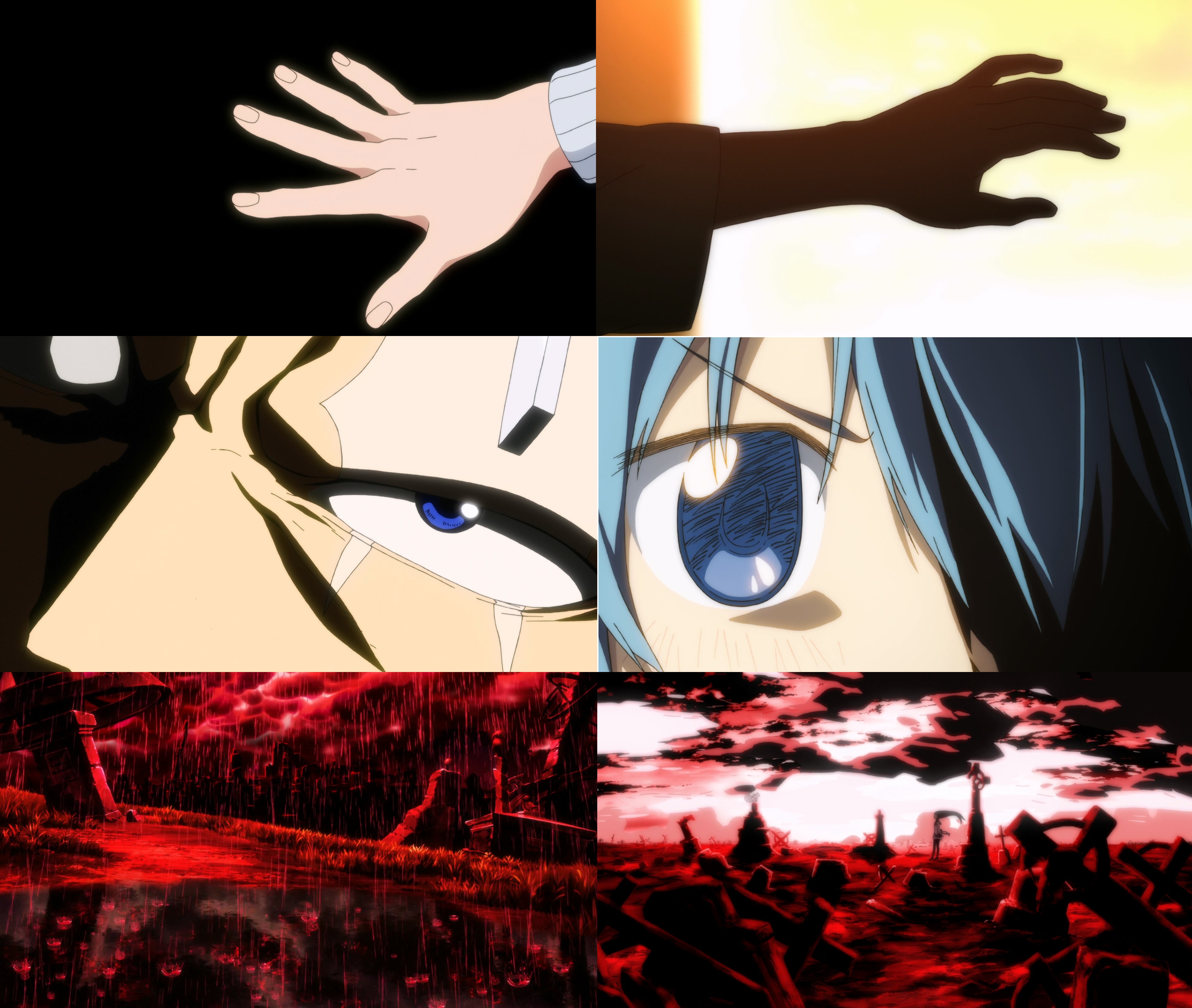 И из совсем недавних нужно сказать про Кэнджиро Окаду и Хаджиме Оотани. Они начали выдвигаться на первые роли в шафте в конце 10ых-начале 20ых. Для Окады самым заметным тайтлом там был сангатсу, который он режиссировал с Симбо, а последним, пока - rwby, где он помогал Судзуки. После чего он ушел делать два(пока) сезона блэк батлера, второй вот только что вышел весной. Вообще над блек батлером и до этого шафтовские режиссеры работали, я упомиал - так что серия можно сказать была уже подготовлена. Вот на этот поздний шафт типа Красавчиков детективов и в чем то руби и похоже. Не совсем-совсем похоже, конечно, но каке то моменты прямо оттуда взяты - даже пригласили того же художника(Хочи Казухиро) который делал воспоминания Маюми в первом эпизоде. Или например эти 3d столовые приборы, которые шафт стал использовать после кизу и особенно в тайтлах этих двоих. В шафте Окада и Оотани часто работали вместе, например один раскадровшик, другой режиссер эпизода - и наобоот. Но из них двоих более ярким и сильным носителем студийного стиля всегда выглядел Оотани. Особенно ему удавались хоррор сцены - можно вспомнить финал зоку овари и особенно 12ый эпизод красавчиков детективов. После детективов он начал работать с маппой, успев ко второй трети продакшена dance dance danseur, где был не только режиссером и раскадровщиком 4х эпизодов, но и отдельно "режиссером балетной части". Сам тайтл неровный - его эпизоды хорошие и явно чувствуются, что его, а значит и шафтовость видна, но остальные уже так себе. Посмотреть можно, особенно если жанр интересен. И почему то до сих пор это, выхлодит, самоя большая его роль после шафта - он чего то там делает в маппе, но не очень понятно чего. Изредка появляется режиссером или раскадровщиком какого-нибудь эпизода, но ничего заслуживающего внимания и всего что-то вроде 3- штук за три года. По слухам у него там какой то проект, ну наверное так, а иначе непонятно чем он занят и зачем туда пошел.