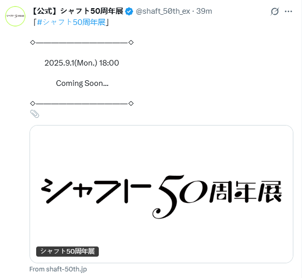 Что то тизерят на свой юбилей. На 45-летие был отсчет дней с иллюстрациями на каждый день, в этот раз без отсчета, но были слухи, что будет какой-то анонс(не обязательно аниме, просто какой то анонс) и вот уже и в твиттере отметились. Основные события и юбилейная выставка будет ближе к концу года, тут или по ней инфа дополнительная или все же что то другое.