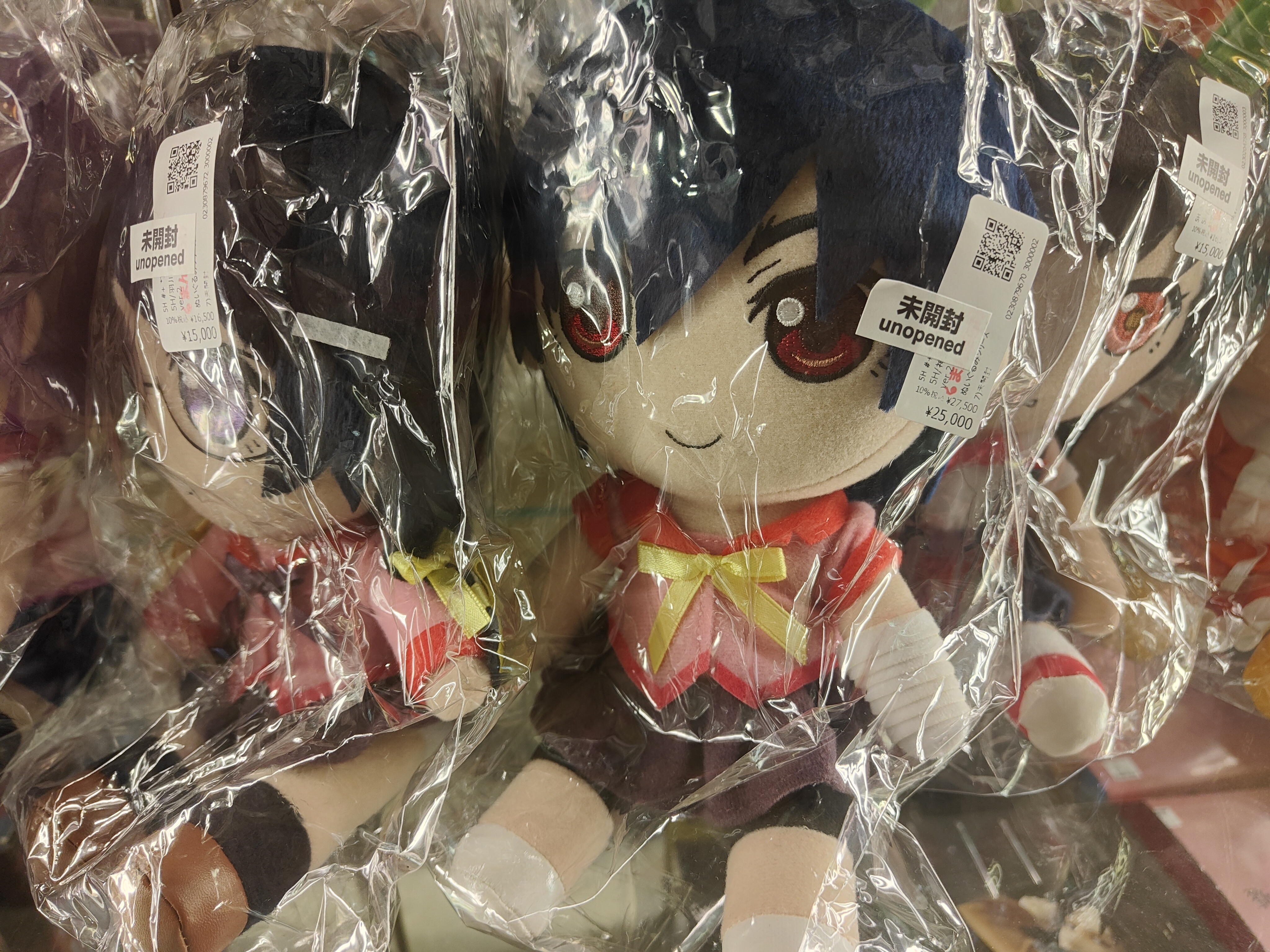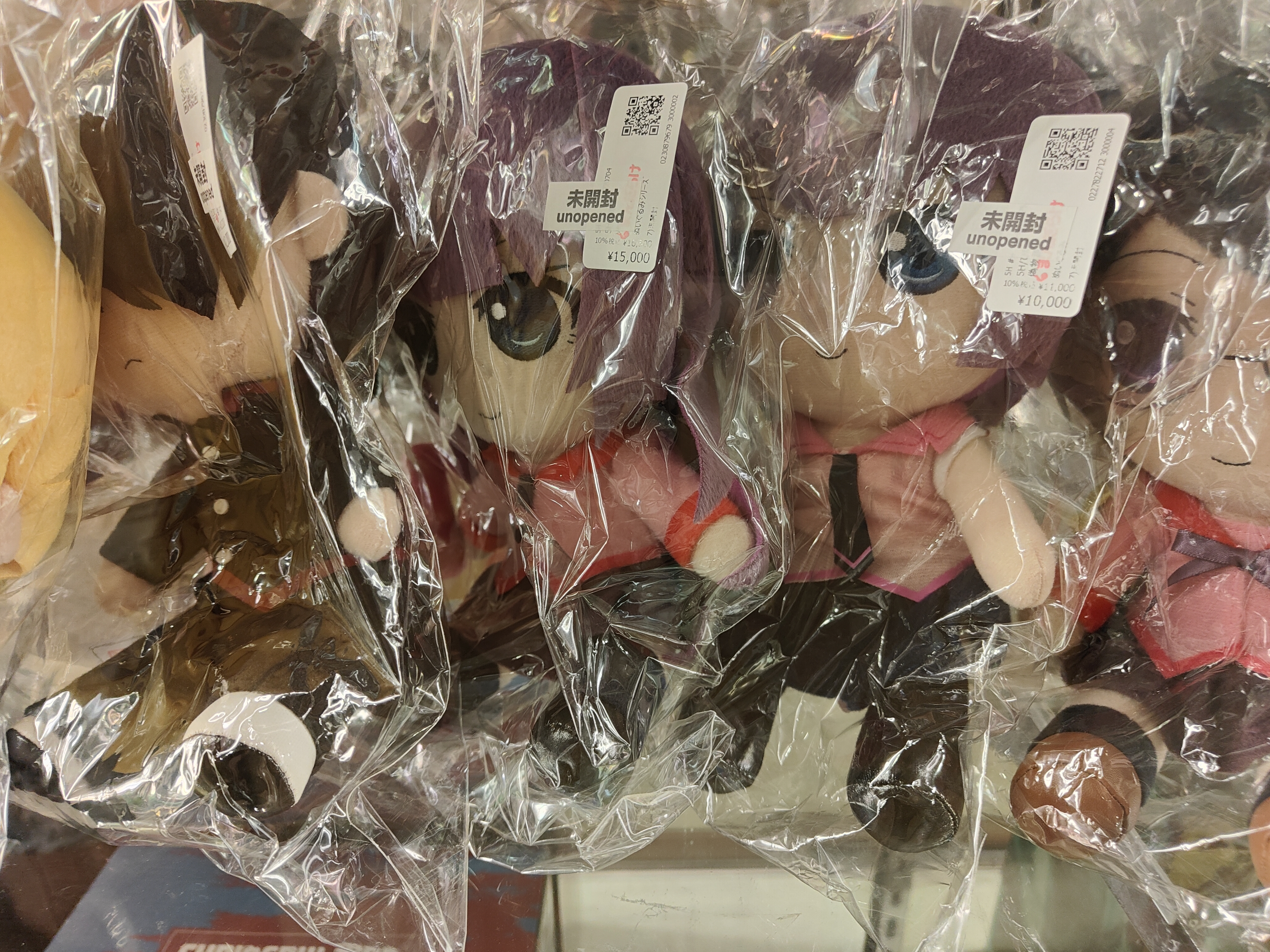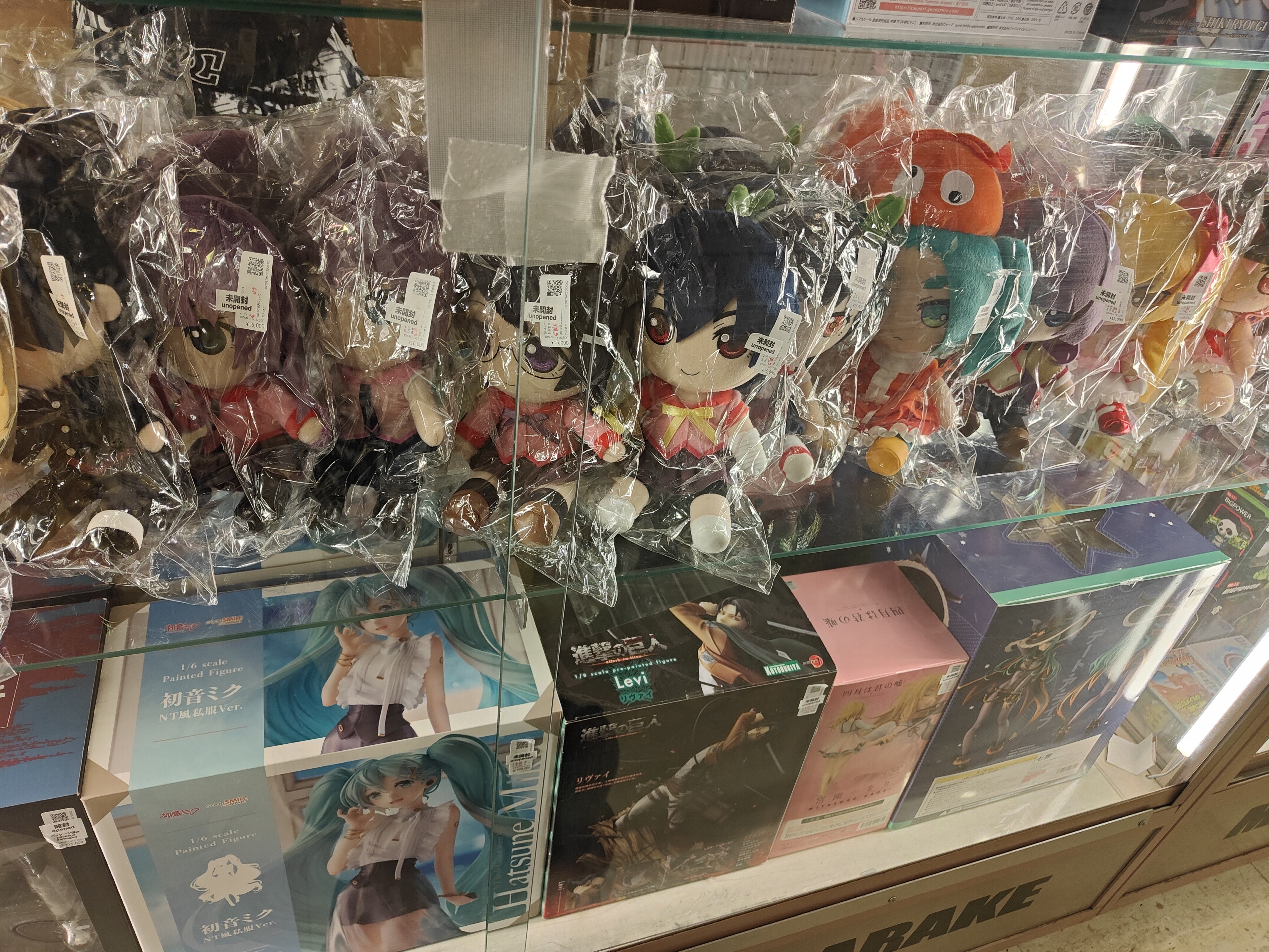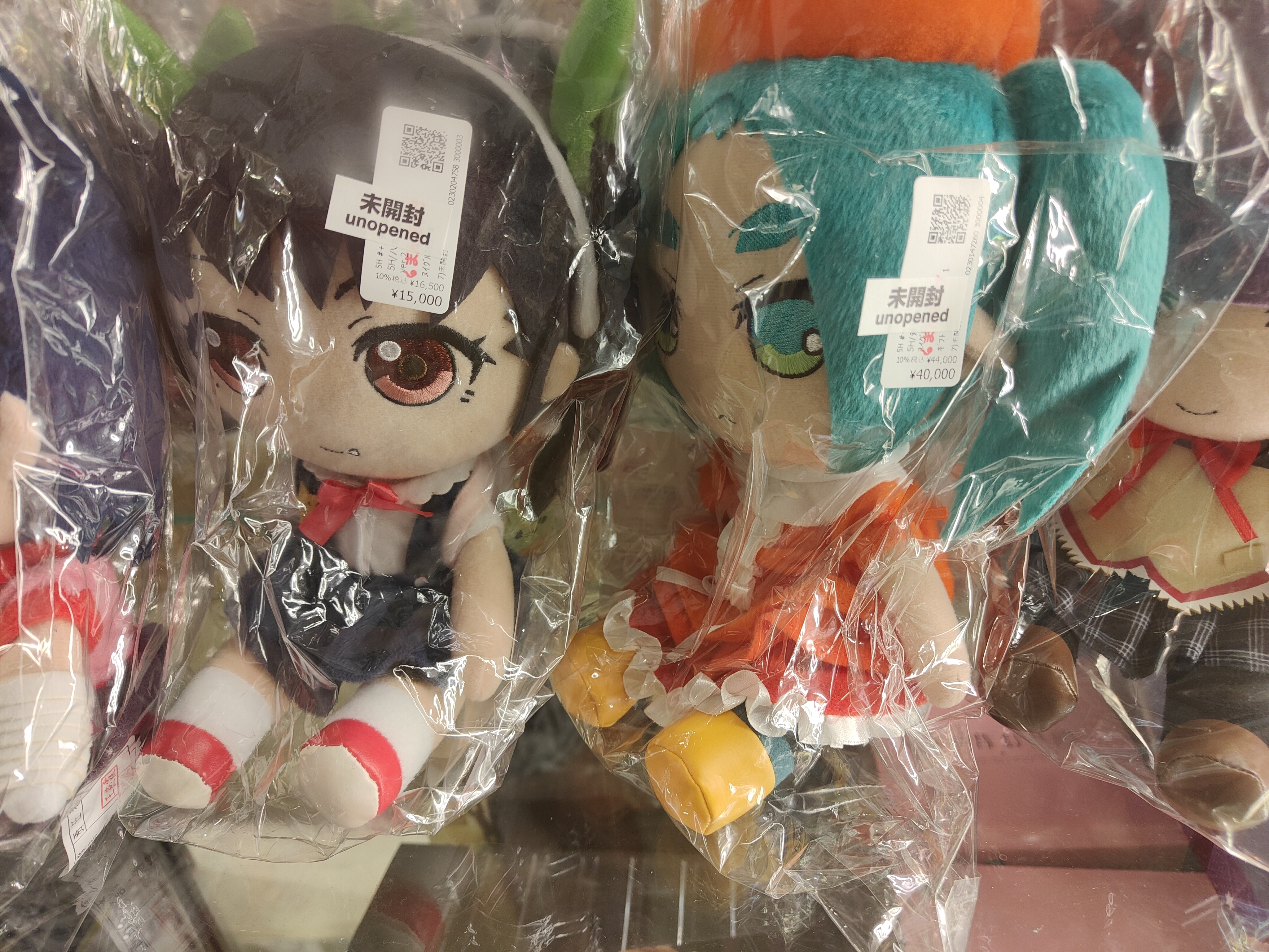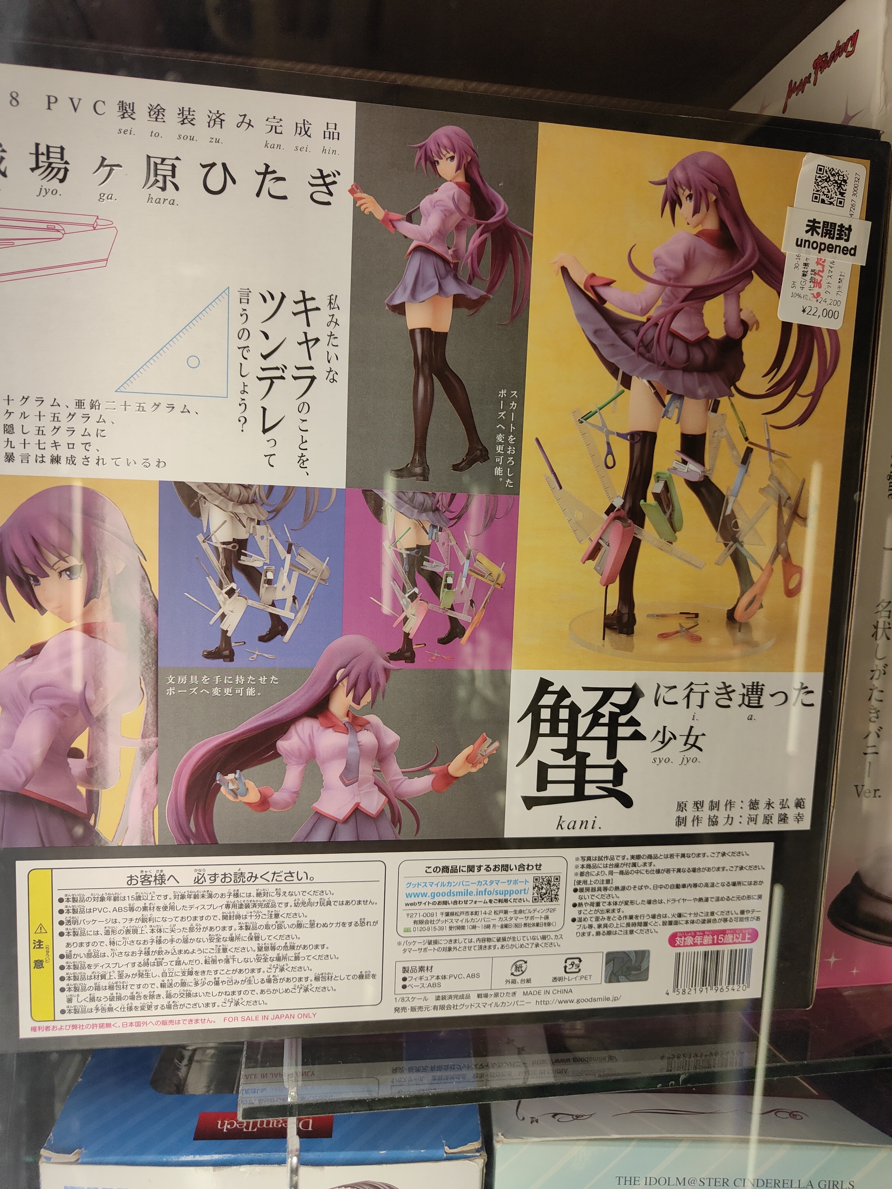 Специально вернулся для вас и отснял внимательнее. Витрину открывать нельзя, так что точнее не получится. Ещё запакованную фигурку Хитаги по цене дешевле некоторых плюшек вам.