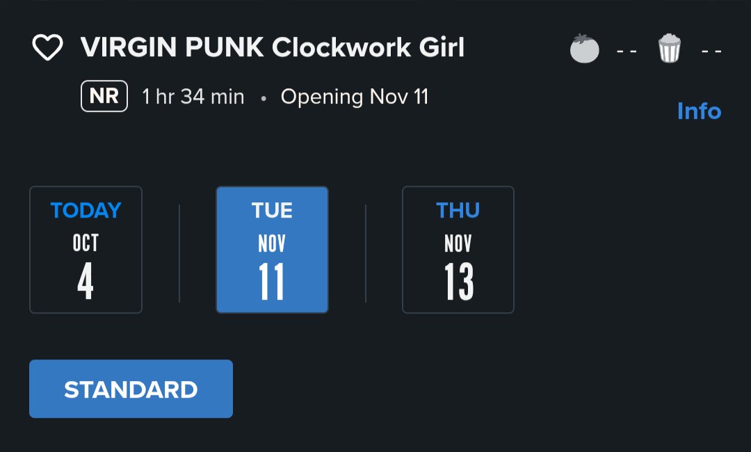 В штатах премьера Virgin punk на 11 ноября. Правда почему то полтора часа написано, но это они наверное решили что "ну не может же всего 30 минут быть, наверное час потерялся в документах"