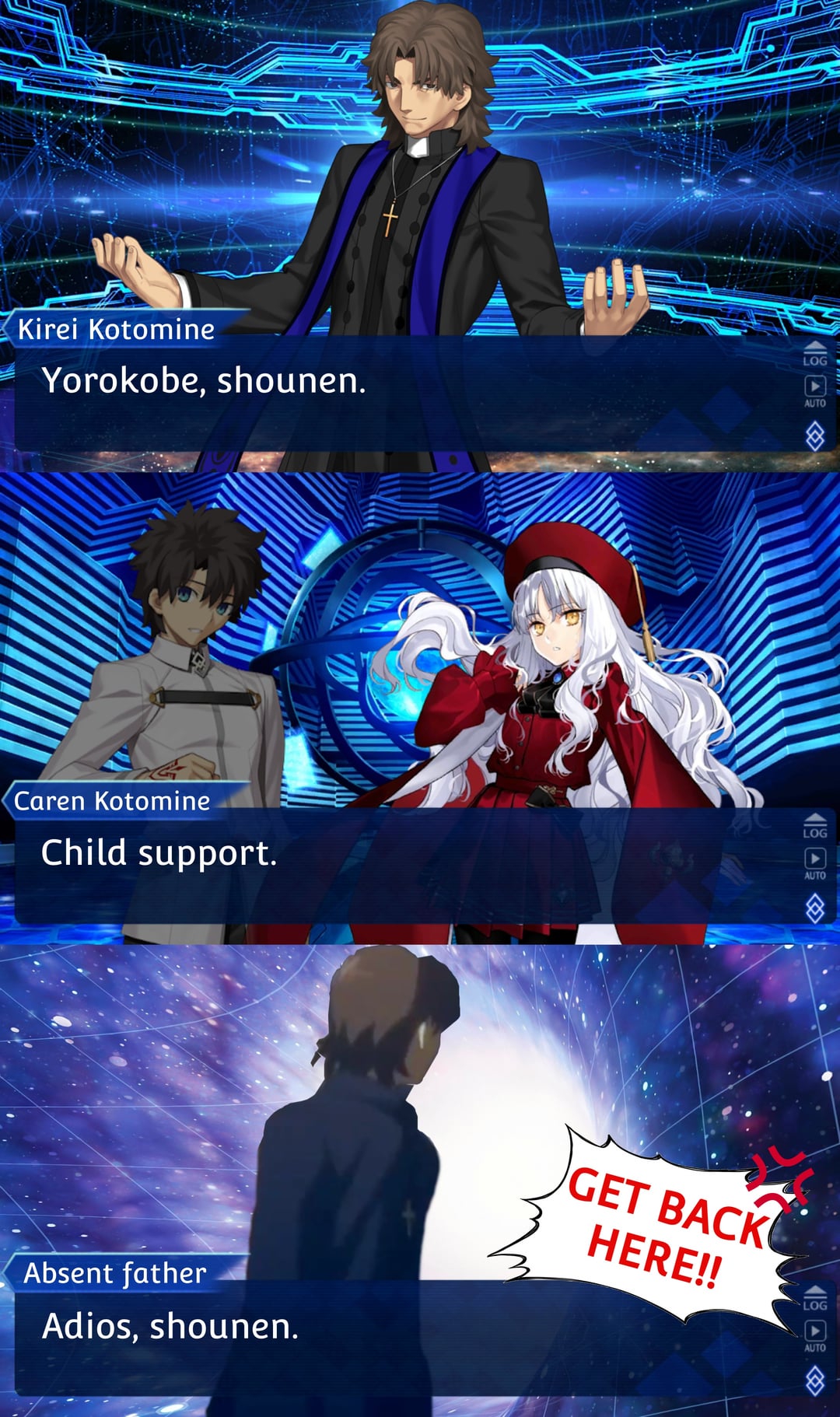 Я тут начал перечитывать Fate и чёт взоржал маленько. Культовая сцена "Are you my master?" и я только-только заметил, что Широ не отвечает на этот вопрос, так как находится в слишком большом ахуе с происходящего. То есть Сейба тупо прописалась у Широ.