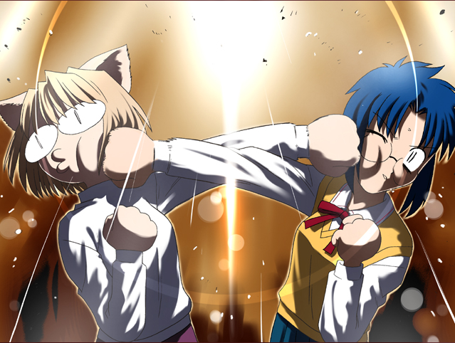 >>7932826 Строго положительно. С эмуляцией нужно помучиться, потому что выходила на PS2/PSP (на PSP есть отличия в контенте), но даже на средних пеках выдаёт кристально чистую картинку в фуллХД. Как файтинг объективно средненький, есть проблемы с балансом, с таймингами, в общем явно не киберспорт в отличии от того же Melty Blood. Но как отдушина после F/SN - самое то. Развлекался, переигрывая события фейтоты в рамках этого файтинга. И прикольные экстра-активности а-ля Hollow Ataraxia у Кирея - поедание мапо-тофу на скорость. С точки зрения файтинга как именно что как файтинга намного лучше выглядит Crucis Fatal+Fake, у него ещё Кастер с Кузуки на логотипе (в спижженом из Final Fantasy VIII арте). Выглядит как комок полигонов, но играется намного бодрее. Ещё здесь есть рабочая система Мастер+Слуга, что-то вроде систем double-team из например той же MK. Мастерам тяжко конкурировать со Слугами, но переключение нужно, чтобы дать Слуге восстановить часть своих жизней.