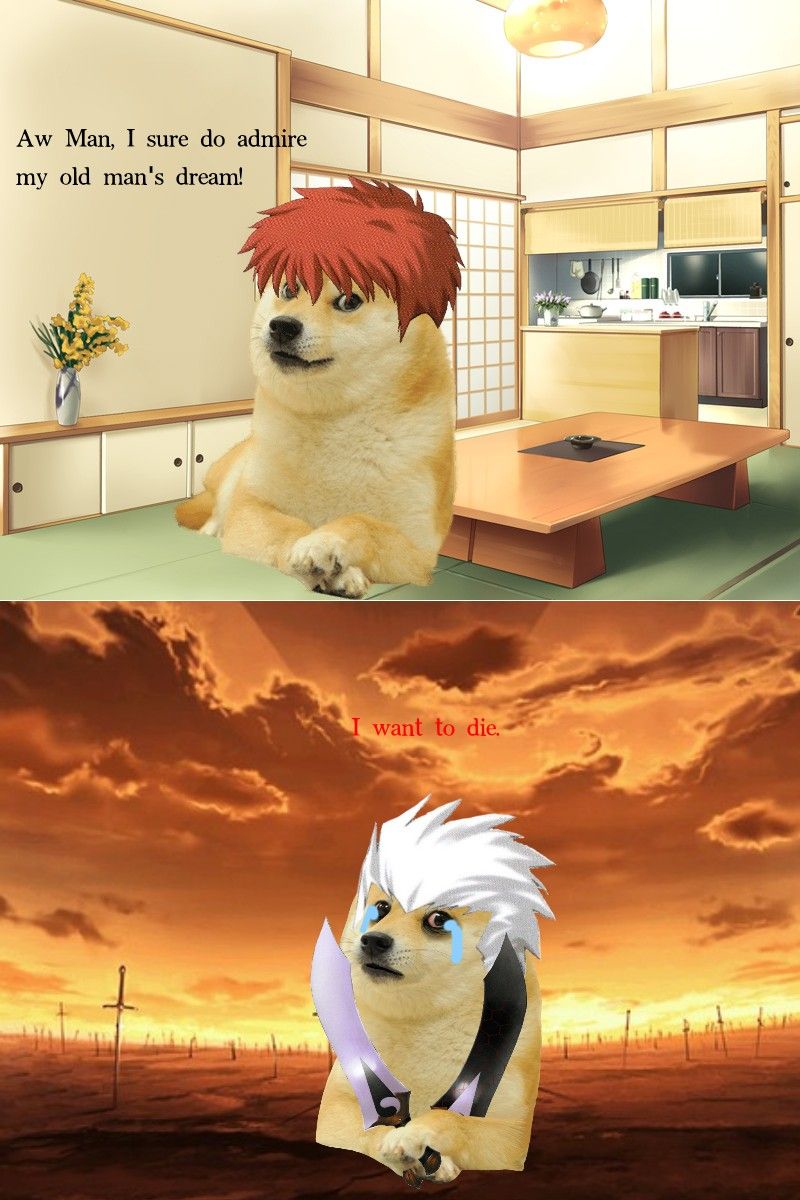 > Нет, ширный вон кайфует. Где? Он умер тысячей смертей, был накуканен всеми мыслимыми и немыслимыми способами. Кайфа у него во время ВСГ у него было разве что в хибарке с Сэйбой/в спальне с Рин или Сякурой. Всё.