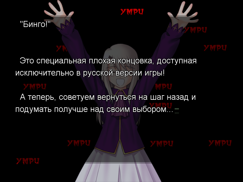 Ну и еще важный момент - канонический первые рут, где Мато попущены русской княжной Артурией. Битва с райдой, эскалиба в небо, вот это всё.