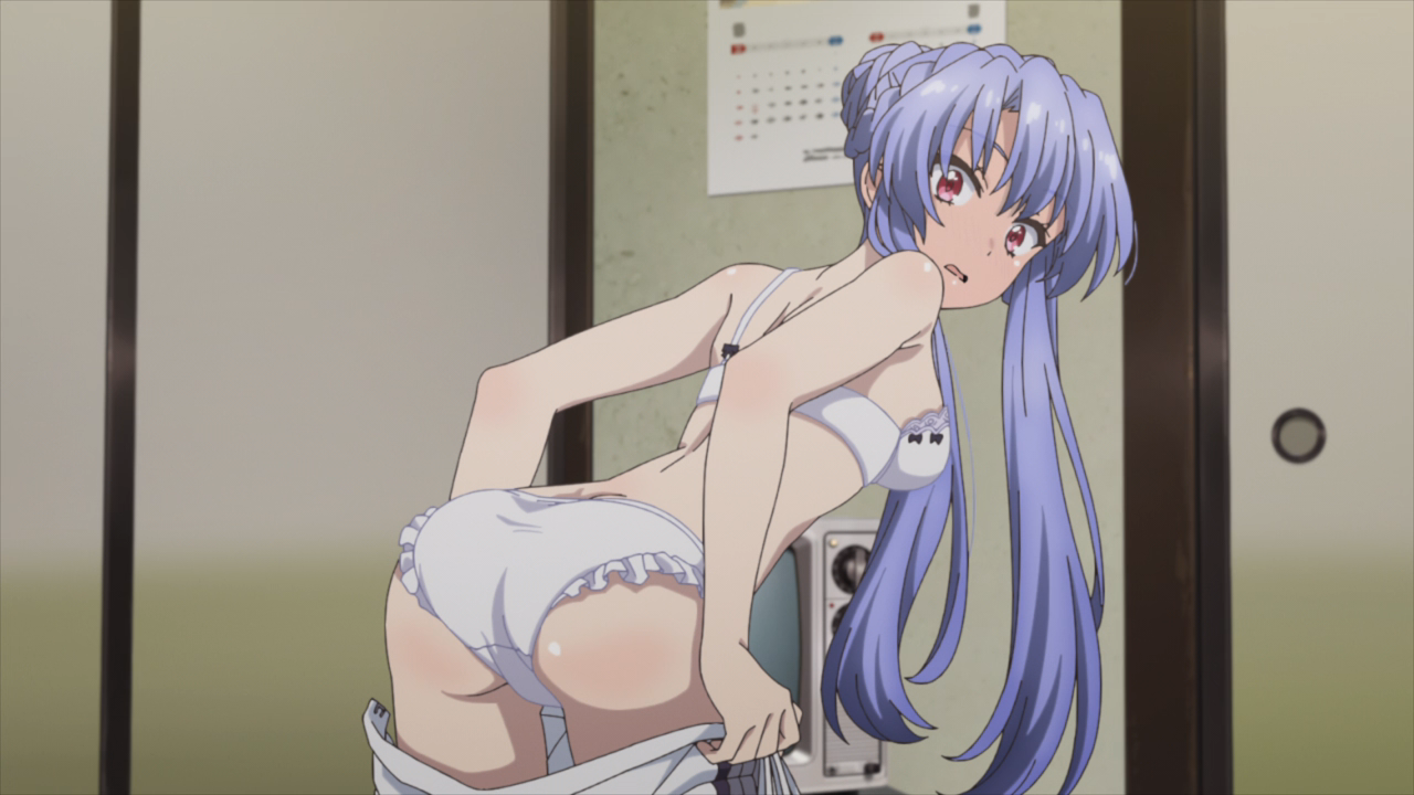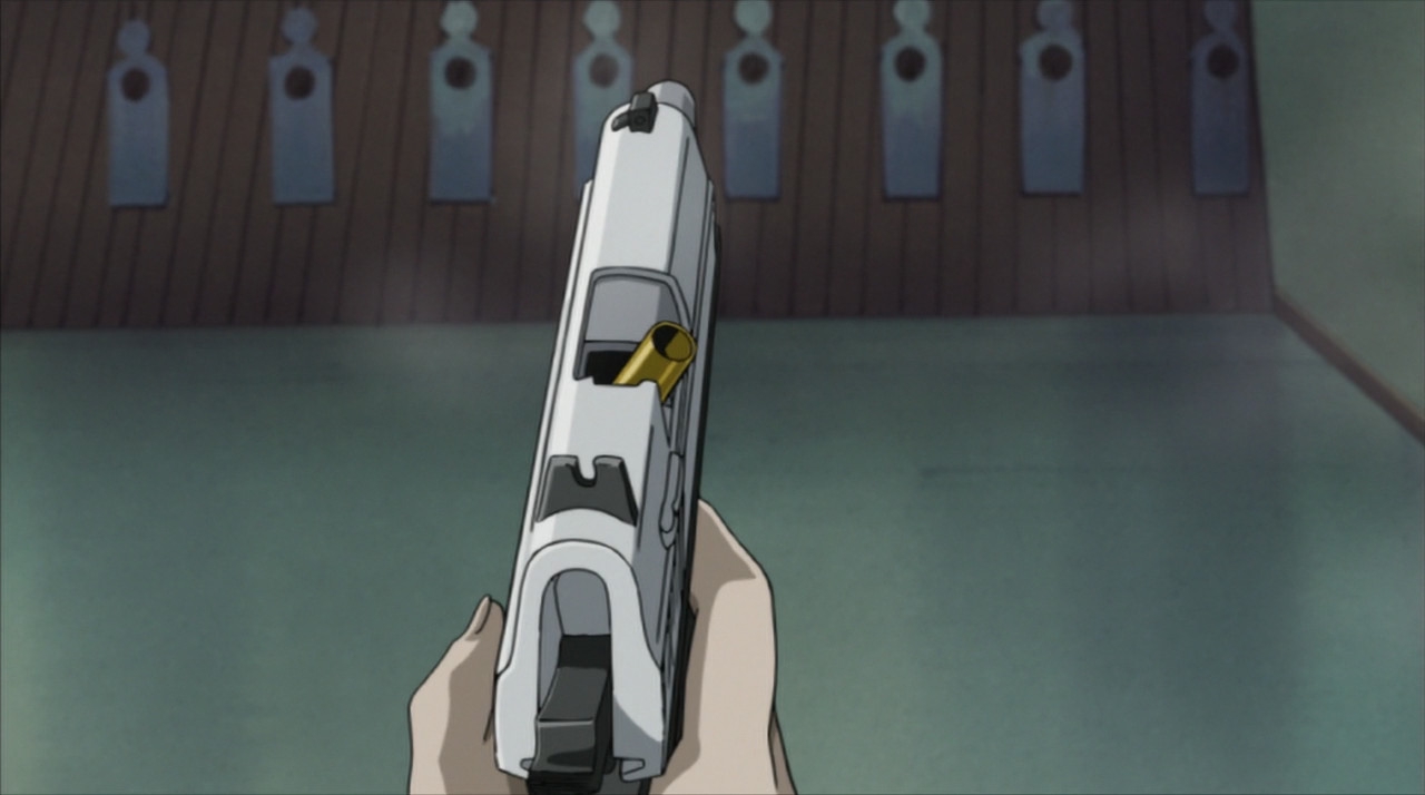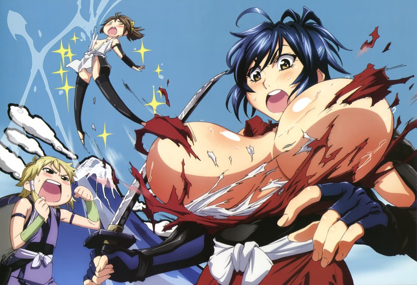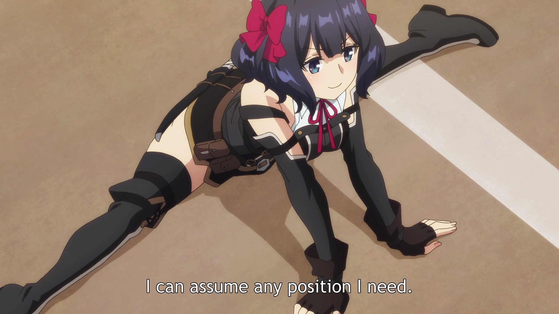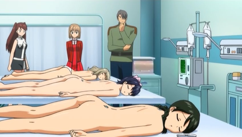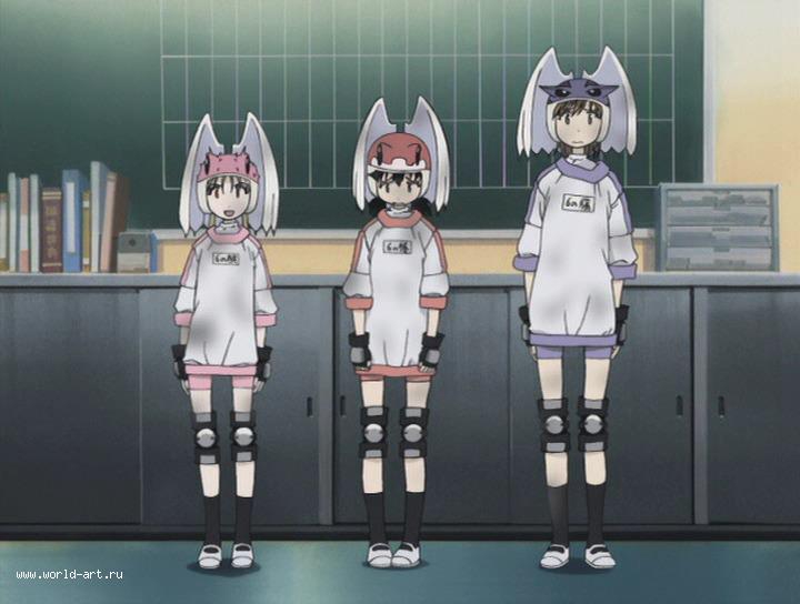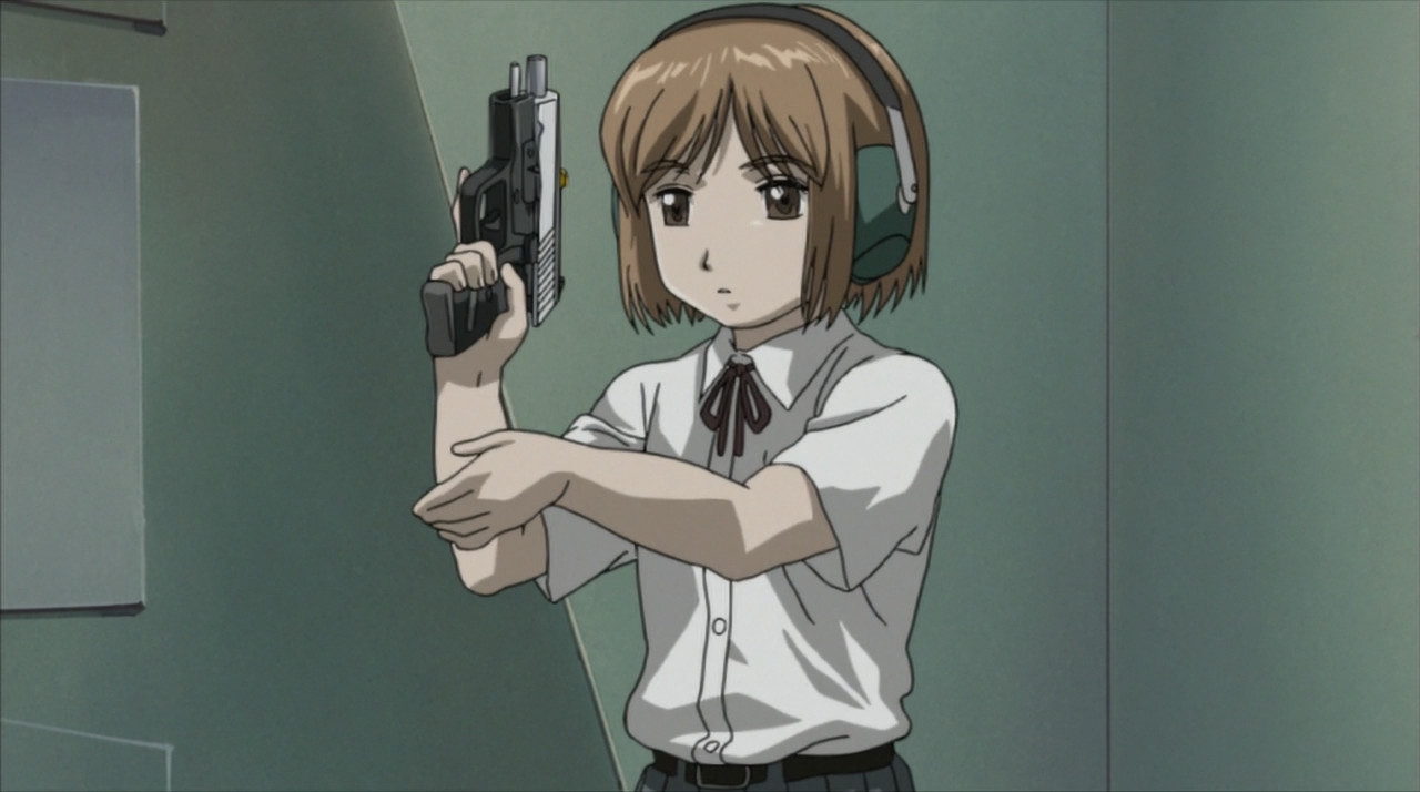 Столпы аниме наглядно. Девушки, оружие, формы с авторской физикой от аниматора, обтягивающий комбинезон чтобы фигуру можно было просто закрасить вместо рисования одежды, потому что время на одежду всегда уходит на ушки, хвосты и прочие аксессуары.