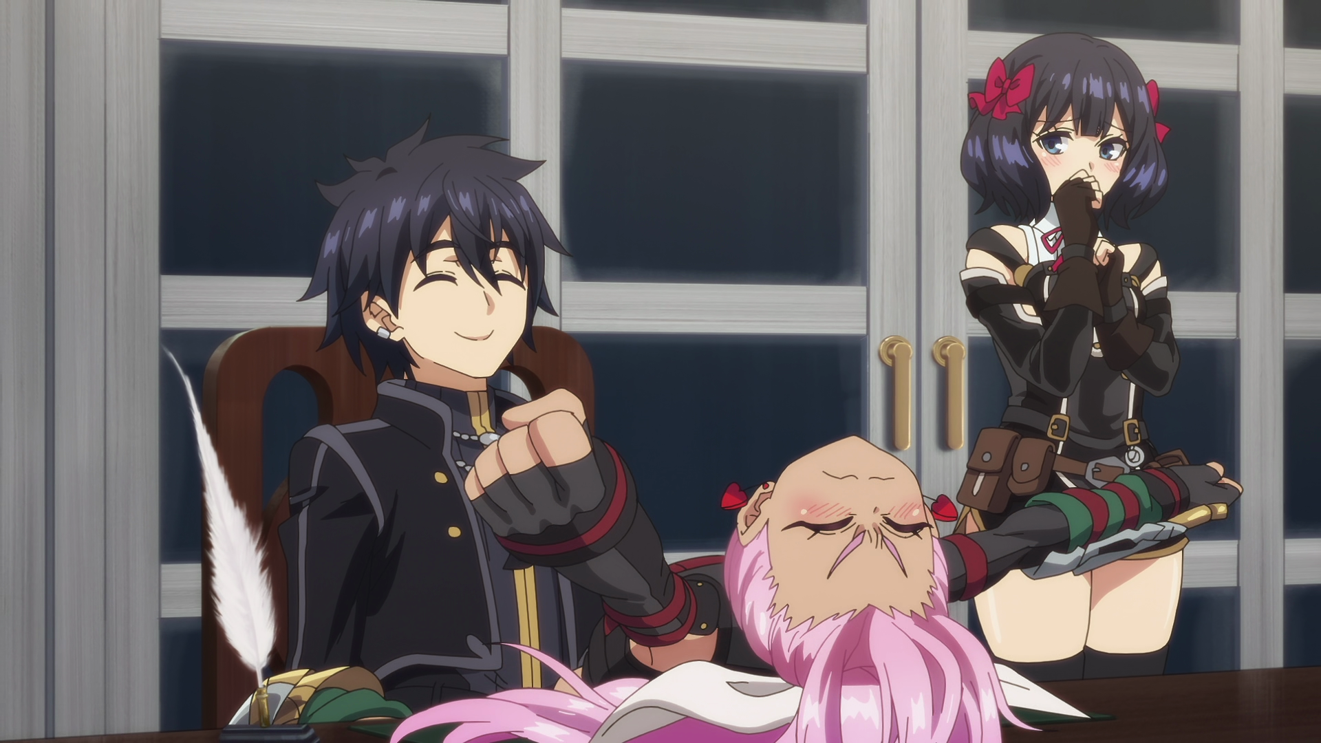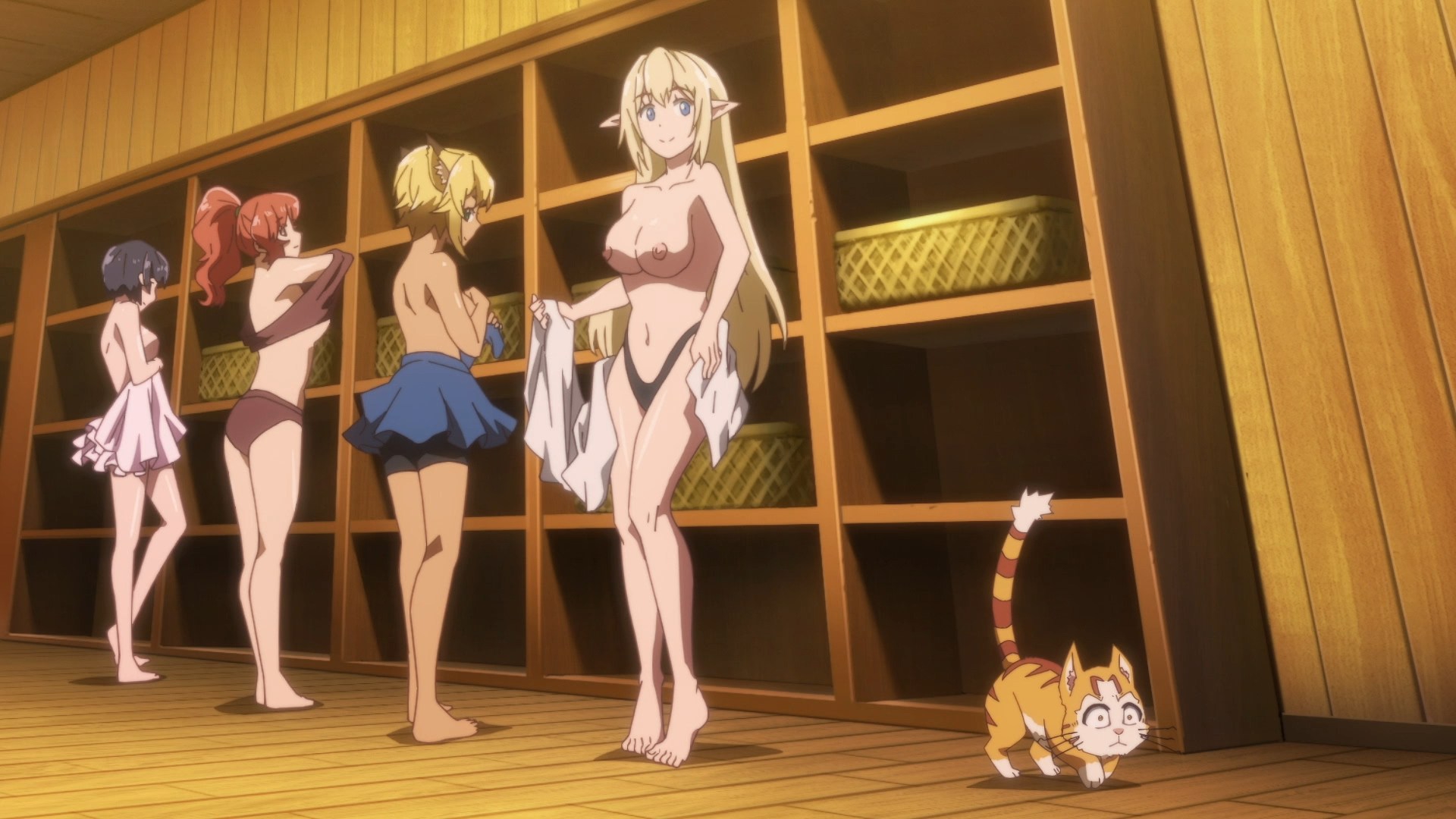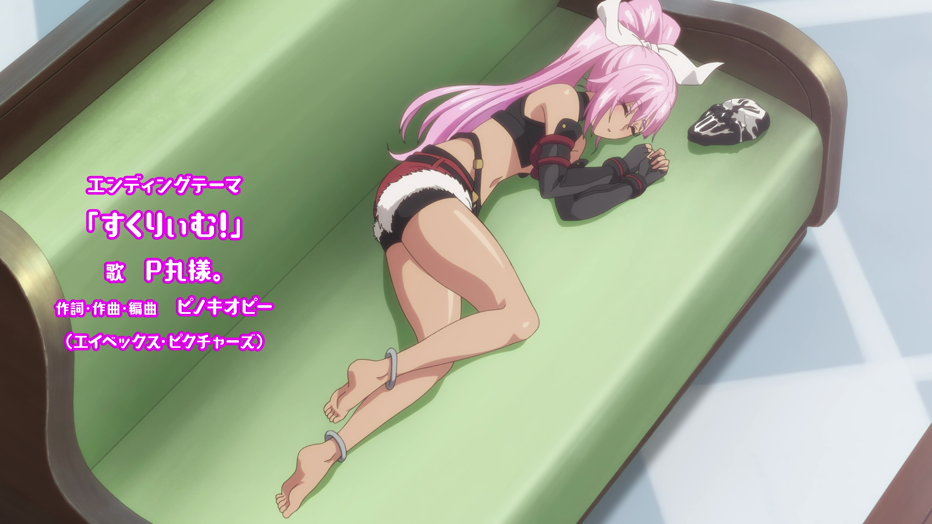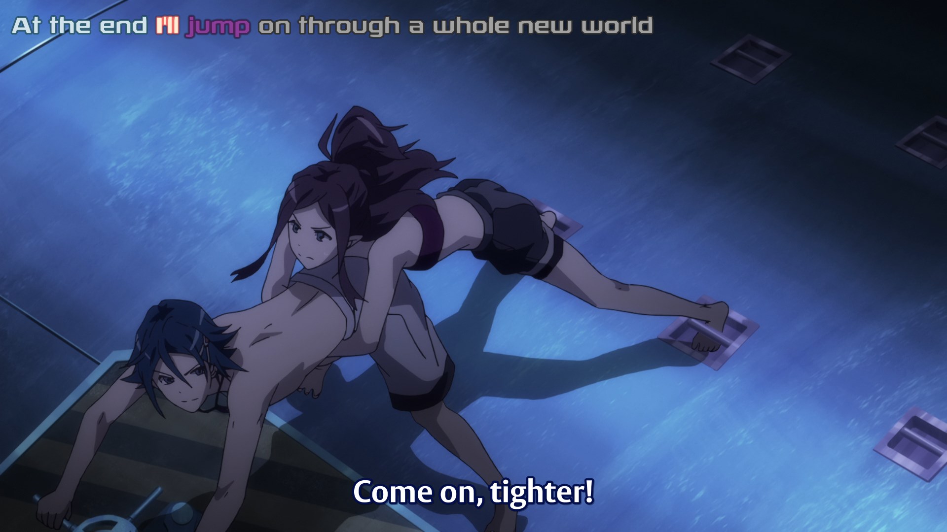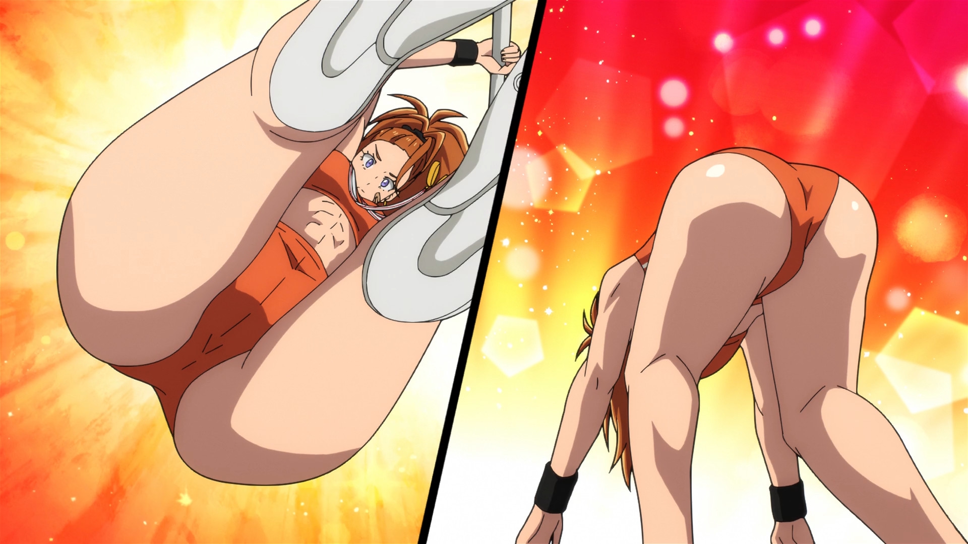 Столпы аниме наглядно. Девушки, оружие, формы с авторской физикой от аниматора, обтягивающий комбинезон чтобы фигуру можно было просто закрасить вместо рисования одежды, потому что время на одежду всегда уходит на ушки, хвосты и прочие аксессуары.