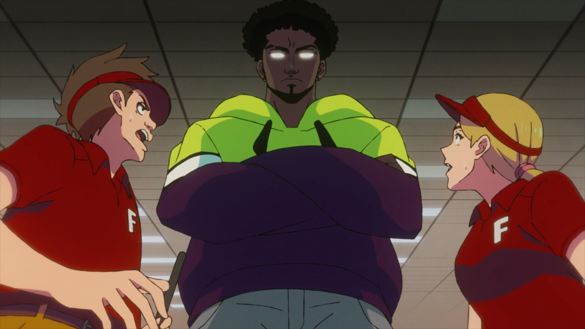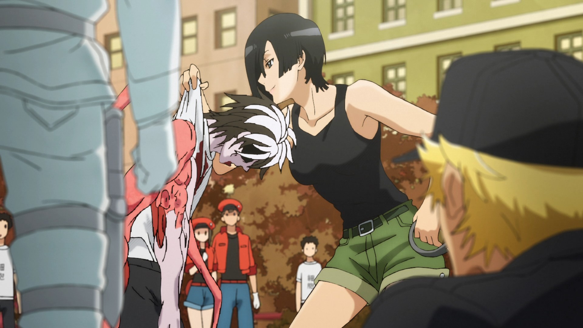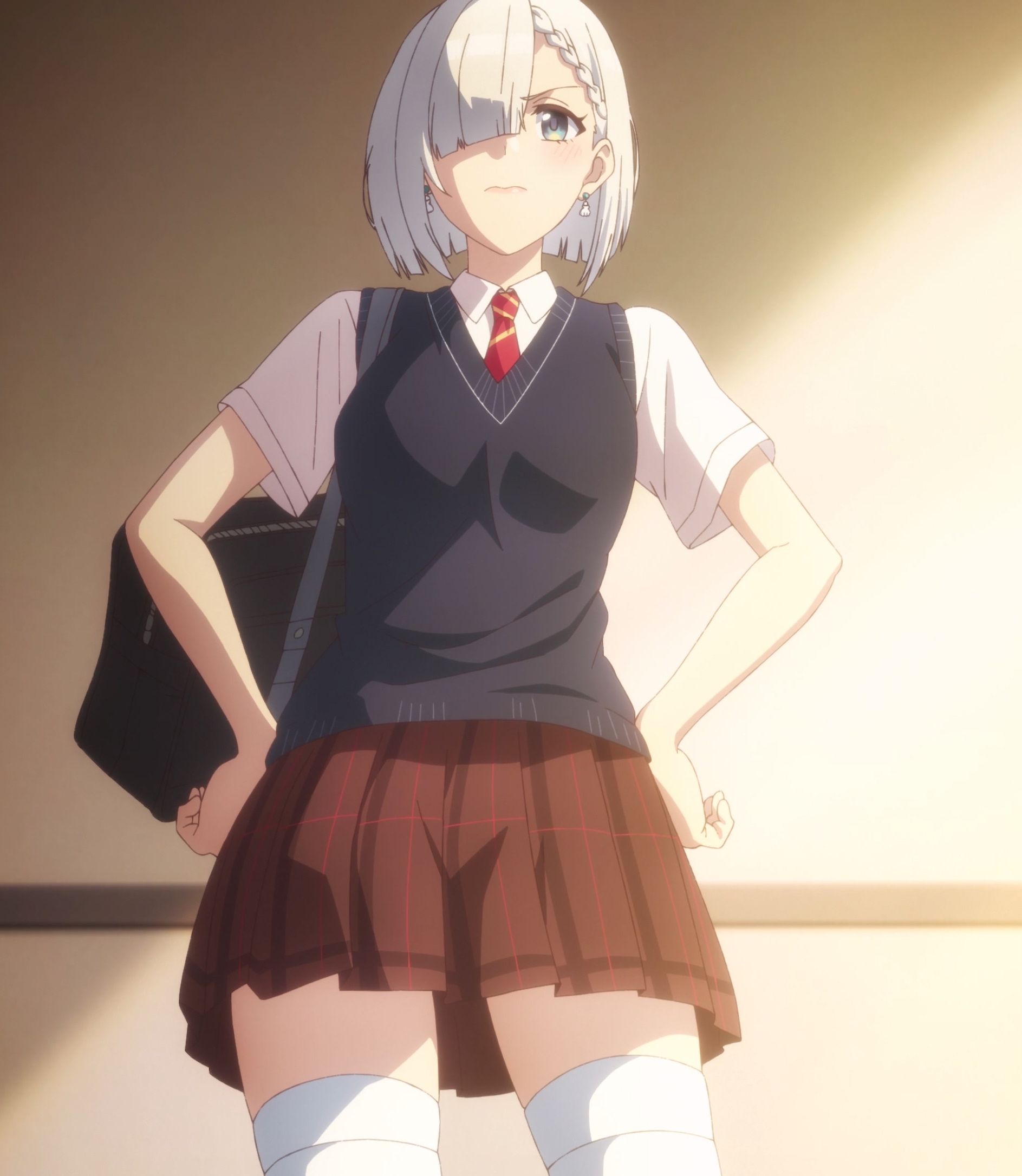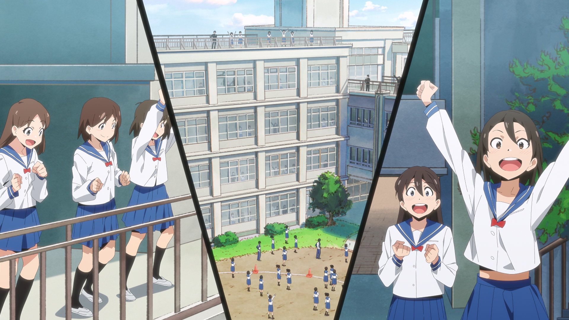 Столпы аниме наглядно. Девушки, оружие, формы с авторской физикой от аниматора, обтягивающий комбинезон чтобы фигуру можно было просто закрасить вместо рисования одежды, потому что время на одежду всегда уходит на ушки, хвосты и прочие аксессуары.