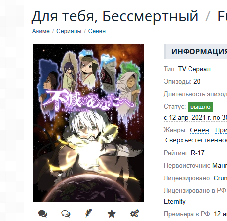 Хроники людей и демонов - просмотрено. Сериал по духу похож на Мушиши. Первые 3/4 сериала были про движуху разной степени интенсивности с участием ГГ: убивал демонов, всякие загадки, с ними связанные, разгадывал. После смерти старшего брата-самурая-хозяина лапшичной и последующей переоценки ценностей ночью в заброшенном храме, которую для ГГ провела приемная дочка того лапшичника, ГГ успокоился, а тайтл стал похож на слайсик только с точки зрения бессмертного. В общем, интересная композиция у сериала. Сначала ГГ все к чему-то стремился, гнался за своей целью, а потом перестал и последние эпизоды просто жил жизнью обычного человека, который уже никуда не спешит. Жалко только, что эта экранизация (части ранобэ) не закончилась на чем-то более определенном, конечном.