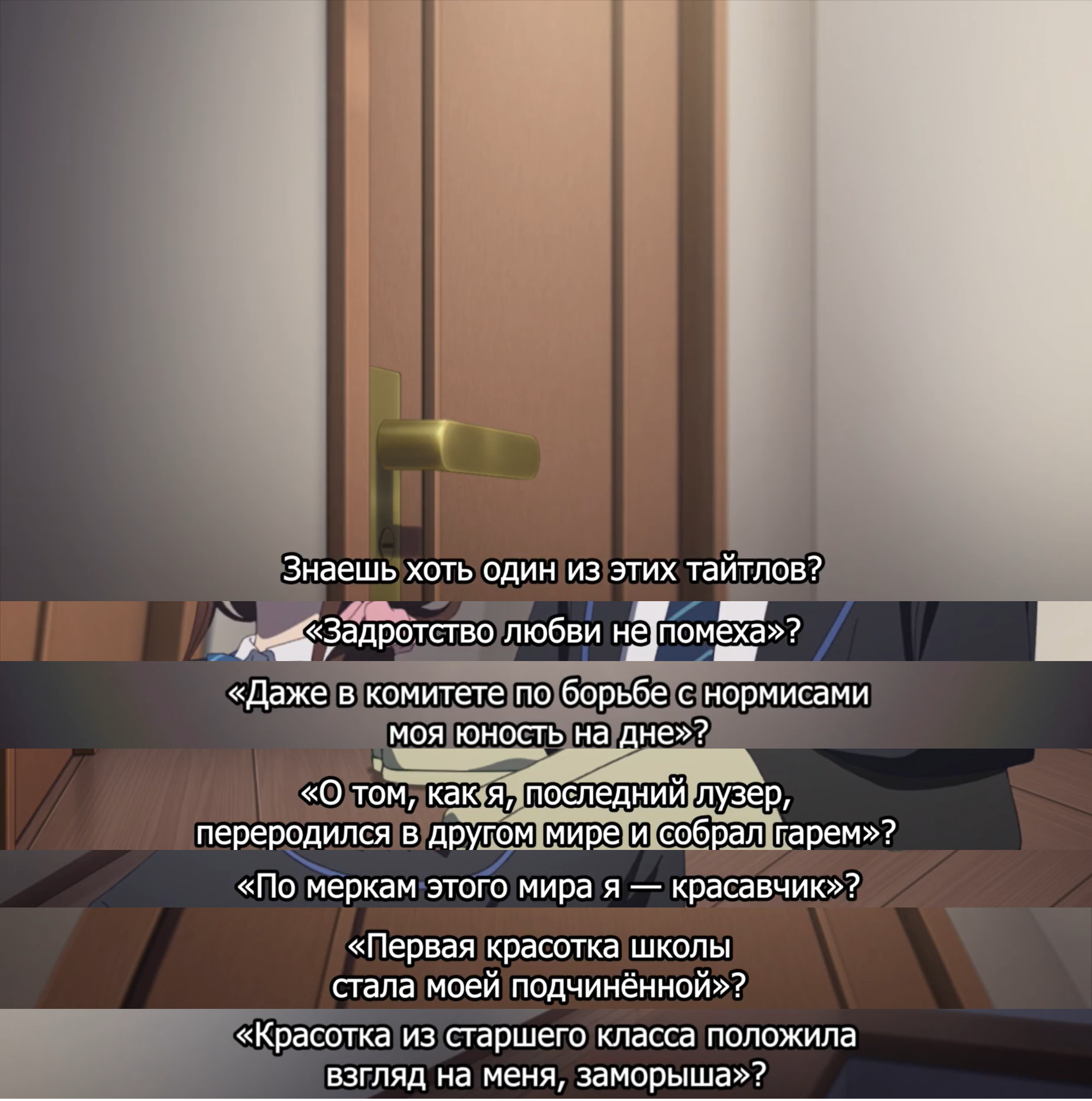 >>7931305 Интересно кстати, отсылки в названиях тайтлов на 6м пике это приколы сабберов или в оригинале тоже были такие вот референсы? энивей я только на чунибье отсылку понял