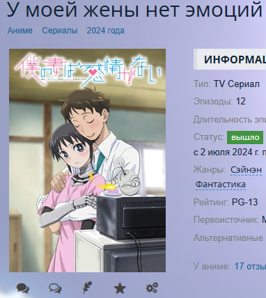 >>7931513 Да всё нормально, я уже сам нашел его, так что их помощь не понадобилась. Хотя дополнительно я искал еще про секс-робота >>7931242, который тоже не прочь глянуть (пока еще не начал)