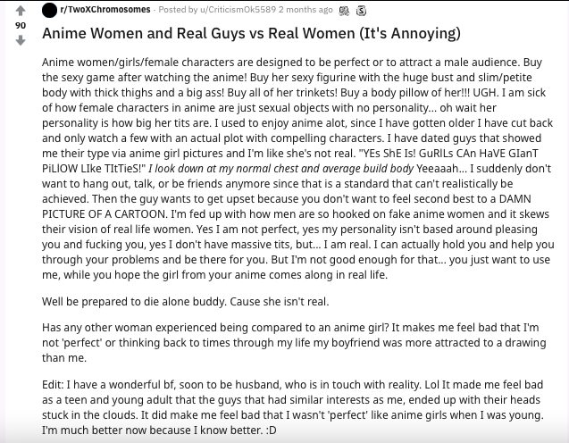 Но может и лучше такой конец, кринжовенький, но приятный. А не форсед признание в последней арке-говняке из манги с куколдскими мотивами, хуяк хуяк все отношашки и свадьба за кадром teh end