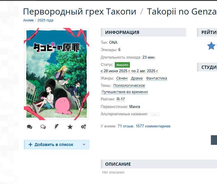 >>7934817 Тайтол 2003 года, я старое аниме не смотрел. Как вкатился в 2020м так и сомтрю с этого года аниме, за редким исключением. >>7934829 >>шины >>рейт 6.37 Мдауж.