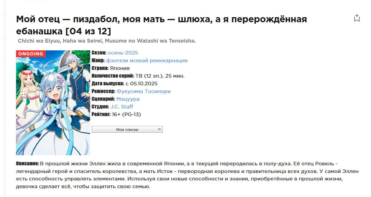 Ближайшие премьеры: Fushigi no Kuni de Alice to: Dive in Wonderland – 29 августа https://youtu.be/Xs-qujW9gMw Isekai Munchkin: HP 1 no Mama de Saikyou Saisoku Dungeon Kouryaku – октябрь https://youtu.be/9EdDQ2QNmEs Hell Mode: Yarikomizuki no Gamer wa Hai Settei no Isekai de Musou suru – январь 2026 https://youtu.be/dhDyy0eAGDs Gekijouban Tensei shitara Slime Datta Ken 2 / О моём перерождении в слизь 2-й фильм – 27 февраля (в кинотеатрах) https://youtu.be/tBA9iiLYk9Q https://youtu.be/Xf73IT2cnGE Saikyou no Shokugyou wa Yuusha demo Kenja demo Naku Kanteishi (Kari) Rashii desu yo? – апрель 2026 https://youtu.be/R0kiKttn8GI Honzuki no Gekokujou: Shisho ni Naru Tame ni wa Shudan wo Erandeiraremasen pt3 – 2026 Re:Zero s4 – 2026 https://youtu.be/Ndi1vPKZ4g4 https://youtu.be/01nLOU3J_Uo Mushoku Tensei: Isekai Ittara Honki Dasu 3rd Season / Реинкарнация безработного: История о приключениях в другом мире 3 сезон – 2026 https://youtu.be/SUZNsBQP4uI https://youtu.be/IPd6V4VyjHc Tensei shitara Ken deshita s2 / О моём перерождении в меч 2-й сезон – 2026 Isekai Nonbiri Nouka s2 – 2026 https://youtu.be/-Do46yCEZP4 Okiraku Ryoushu no Tanoshii Ryouchi Bouei – 2026 https://youtu.be/NGeVvNrJo8o Shin Magic Knight Rayearth – 2026 https://youtu.be/IWnj91xAq7o Youjo Senki 2 / Таня 2 сезон – анонс Otome Game Sekai wa Mob ni Kibishii Sekai desu s2 / Мир отомэ-игр — это тяжёлый мир для мобов 2-й сезон – анонс Magical★Explorer: Eroge no Yuujin-Chara ni Tensei shita kedo, Game Chishiki Tsukatte Jiyuu ni Ikiru – анонс Sekai Saikou no Ansatsusha, Isekai Kizoku ni Tensei Suru s2 / Лучший в мире ассасин, переродившийся в другом мире как аристократ 2-й сезон – анонс Isekai de Cheat Skill wo Te ni Shita Ore wa, Genjitsu Sekai wo mo Musou Suru: Level Up wa Jinsei wo Kaeta s2 – анонс Kage no Jitsuryokusha ni Naritakute! Movie: Zankyou-hen – анонс https://youtu.be/O4G4OTSjO1Y Sasaki to Pi-chan s2 / Сасаки и Пи 2-й сезон – анонс https://youtu.be/yXXVpHDNg2E Tsuki ga Michibiku Isekai Douchuu 3rd season / Лунное путешествие приведёт к новому миру 3-й сезон – анонс Chiyu Mahou no Machigatta Tsukaikata s2 / Неправильное использование исцеляющей магии 2-й сезон – анонс https://youtu.be/vPQ1dfQbaMY Tensei shitara Slime Datta Ken 4rd Season / О моём перерождении в слизь 4-й сезон – анонс Mairimashita! Iruma-kun s4 – анонс https://youtu.be/fF_lsyL-srs Gaikotsu Kishi-sama, Tadaima Isekai e Odekakechuu s2 / Скелет-рыцарь в исекае 2-й сезон – анонс Tensei Kizoku, Kantei Skill de Nariagaru s3 / Реинкарнация в аристократа с [оценкой] 3-й сезон – анонс https://youtu.be/5Y_AXVAOrjQ Mezametara Saikyou Soubi to Uchuusenmochi Datta node, Ikkodate Mezashite Youhei toshite Jiyuu ni Ikitai – анонс KONOSUBA s4 – анонс Tensei shitara doragon no tamagodatta / Реинкарнация в яйцо дракона – анонс Death March kara Hajimaru Isekai Kyousoukyoku s2 / Десмарш 2-й сезон – анонс Higeki no Genkyou to Naru Saikyou Gedou Last Boss Joou wa Tami no Tame ni Tsukushimasu s2 – анонс Akuyaku Reijou no Naka no Hito – анонс Isekai no Sata wa Shachiku Shidai – анонс Risou no Himo Seikatsu – анонс Gacha wo Mawashite Nakama wo Fuyasu: Saikyou no Bishoujo Gundan wo Tsukuriagero – анонс Nidome no Jinsei wo Isekai de – анонс Heroine? Seijo? Iie, All Works Maid desu (Ko)! – анонс Meikyuu no Shiori – анонс Izure Saikyou no Renkinjutsushi? s2 / Возможно крутейший алхимик всех времён 2-й сезон – анонс Jidou Hanbaiki ni Umarekawatta Ore wa Meikyuu wo Samayou s3 / Перерождение в торговый автомат 3-й сезон – анонс Tate no Yuusha no Nariagari 5th Season / Восхождение героя щита 5-й сезон – анонс https://youtu.be/wc5kV7GUgHI Re:Monster s2 – анонс