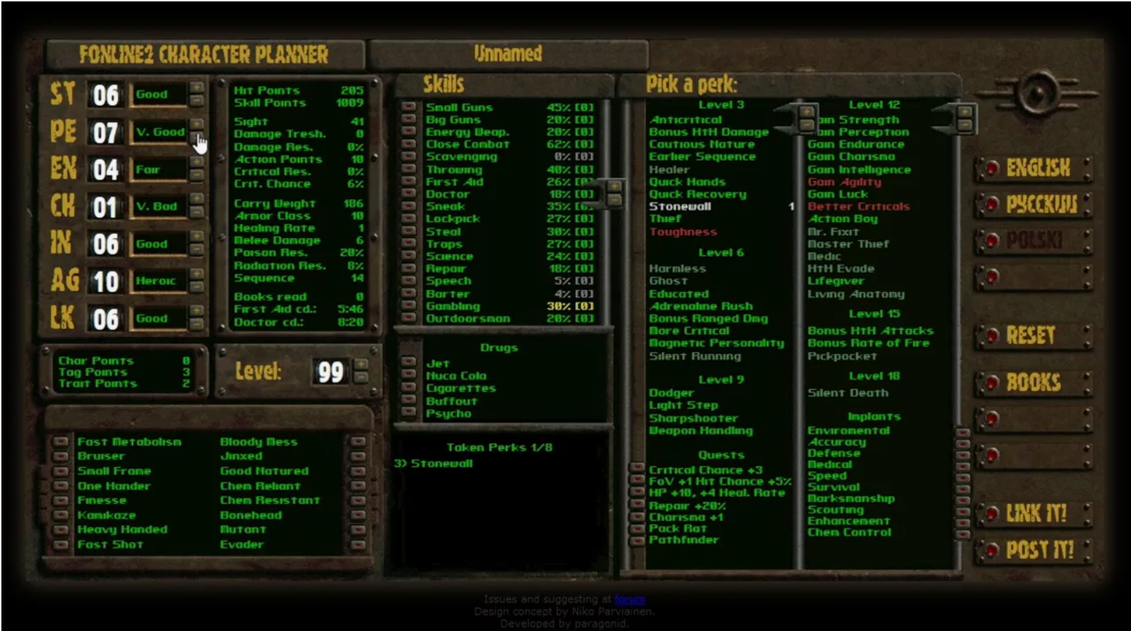 Оно в стиле Fallout, где надо выбрать пару навыков специализации. Там также есть оценка, но чтобы она была крутая-крутая и показывала в том числе работу, нужно туда прям все очки вбухать. Или же распределить всего понемногу. Или сфокусироваться на чём-то более ситуативном.