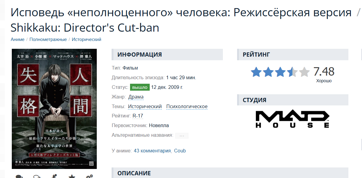 >>7943004 (OP) Прошу посоветовать максимально необычных аниме, которые компактно собраны в 1-2 сезона, вместо десятков сезонов, спешлов и фильмов, которые надо выискивать по всему интернету.