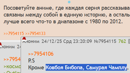 Не смотрел аниме лет 10. Какие онгоинги щас актуальны? Вообще есть пикча на зиму 2025-2026 с тем что выходит? Что вообще хорошего выходило в последние годы? Рельса/индекс - фсё? Кончились? Последнее что смотрел и что бросил это САО кажется, помню лолировал с мемасов под линкин парк про высосанную из пальца драму в этом тайтле. Гаремники ещё лепят в духе хаганай ?