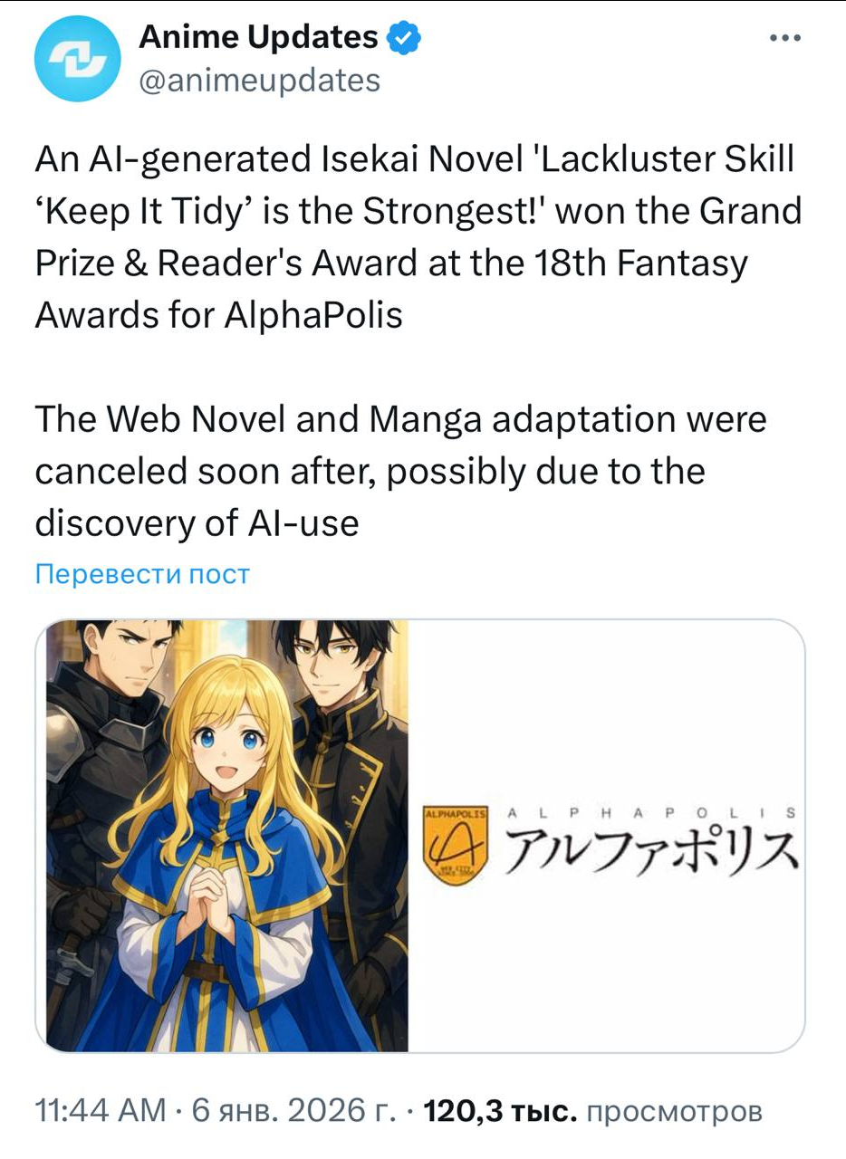 >>7964107 Очевидная Фрирен, которая сейчас рвёт все топы, второй сезон в онгоинге. Также в онгоинге из популярного Новый Фейт странная подделка, 2 сезон Адского рая, 3 сезон Звездного дитя. 2025 год отгремел первым сезоном Фрирен, Монологом Фармацевта, Поднятием уровня в одиночку и Фильмом по Человеку-Бензопиле (сериал от 2022 года). Нитакуси рефлексировали над Первородным грехом Такопи. Сильно значимых гаремников особо не наблюдается, за исключением всяких средняковых фентезийных полу-исекаев, а-ля "Я был говном в пати, ушёл жить в деревню и теперь у меня куча сисястых эльфиек". Сейчас это в тренде, но я не помню чего-то, что было-бы интересно смотреть. Школьная романтика стала более быстрой в плане развития отношений, например в онгоинге "ты и я полные противоположности" - в первой же серии герои признаются друг другу в любви и начинают встречаться. Ещё был перезапуск Ранмы 1/2. Также популярны злодейки "Могу я попросить ещё кое-что?", "Шальной последний босс явился", и в онгоинге "Святой Грааль Эрис" (довольно годно, к слову). В дарк-фентези "Клеватесс", в CGDCT "Драгоценности Рури" был довольно популярен. Аудитория взрослеет и появляется много офисной романтики со взрослыми персонажами "Ты умеешь хранить секреты?", "Вы правда женитесь?", "Неумелый сэмпай". Ещё довольно популярный был "Обыкновенный роман в Коулуне". Ну и из фантастики сейчас в онгоинге идёт "Гносия". PS, ах да, ещё ведьмочки неплохие вышли, "Шампиньонная ведьма" сейчас в онгоинге, свежевышедшая "Молчаливая ведьма", и "Пока ведьма на умрёт." не махо-сёдзе, а именно фентезийные ведьмы. Рекомендую, если нравится подобное.