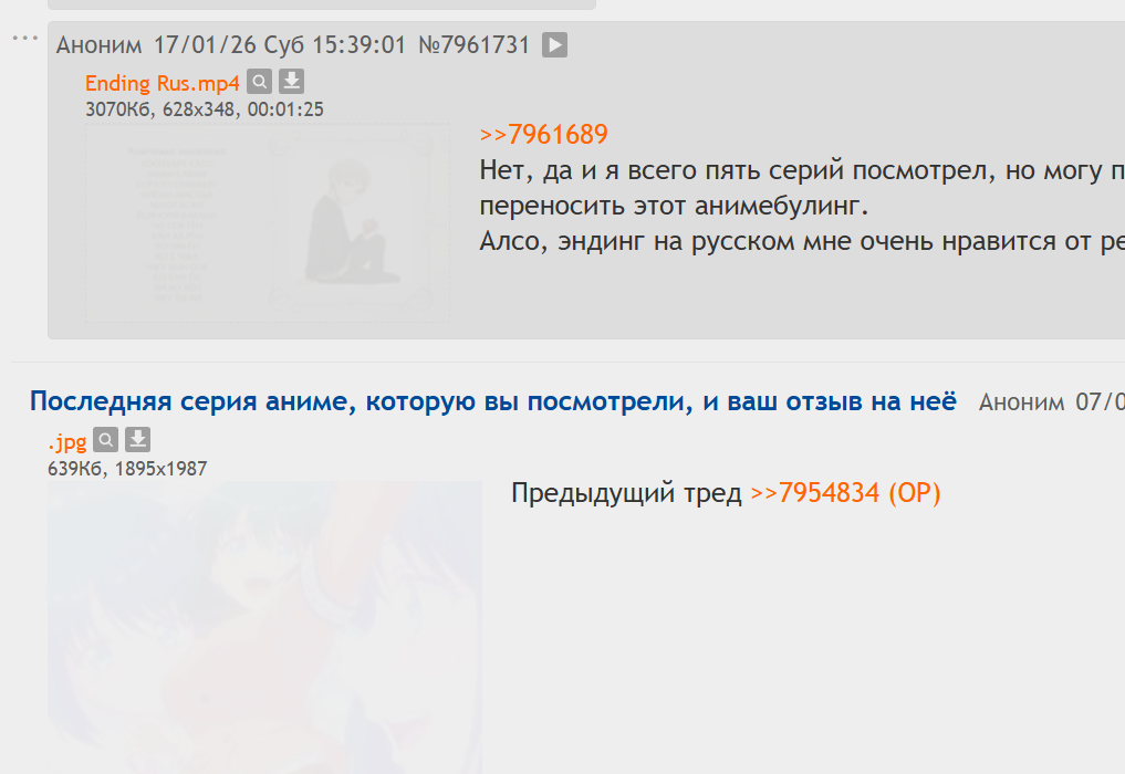 >>7946498 >Видимо ты в этом году на второй курс перешел? Этого в экстрасенсы Ну вообще я эти аниме не смотрел. Просто вайб от них такой. У меня ещё в школе были одноклассники которые их посмотрели и говорили какие классные аниме. Это если не ошибаюсь 7 класс был. Отсюда и цифра 13 лет