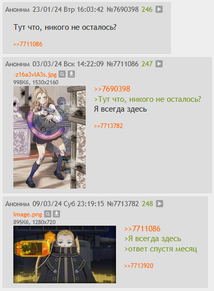 >>7945566 Да все уже и не вспомнишь, в аниме я кажется в 13-14м годах вкатывался, тогда наворачивал все подряд, от базальтовых винчиков вроде тетрадок, до всяких гаремников с трусами. Та же килька тогда очень зашла, а впереди еще были лагуна, иная, гатари, индекс, орегайра первая, да в целом как то куда не ткни везде было что то занятное, унылые тоже попадались, но их как то меньше по ощущениям было, уж куда лучше чем сейчас когда в лучшем случае есть 1-3 смотрибельных тайтла на сезон.
