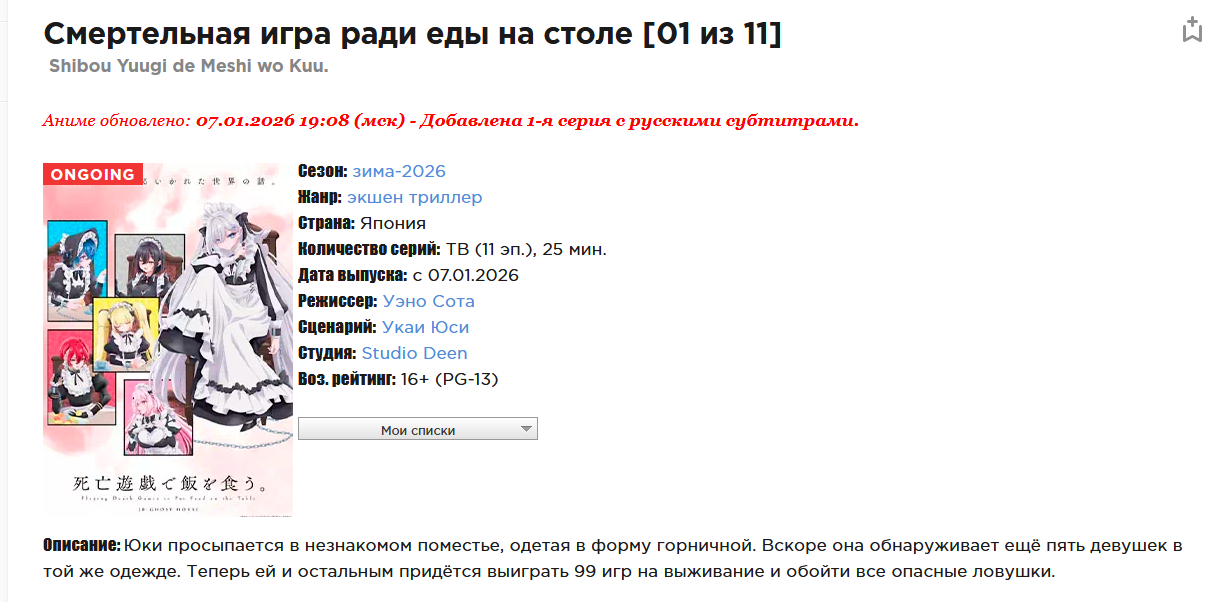 Вот смотрю Dungeon meshi. С одной стороны вроде и норм. Но какого-то интересного сюжета нет. Шуток нет. Просто слайс, но без милых девочек делающих милые дела.