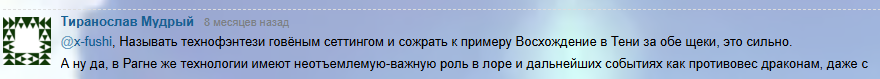 Парень наверное все исекаи уже пересмотрел, что аж героя щита 5 сезон жует сидит. Или наоборот, недостаточно много посмотрел и ему этот кал в новинку. Более того тут встречаются гурманы, которое ранобку по этому дерьму читают, кек.