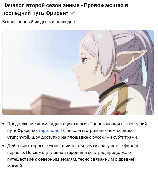 Посмотрел путешествие Элейны, какой же годный тайтл, настоящий хидден гейм по моему. Его обычно советуют как что то похожее на Фрирен, но он гораздо лучше последней. В Элейне лучше и разнообразней персонажи, сюжет интересней и не душит, я прям кайфанул