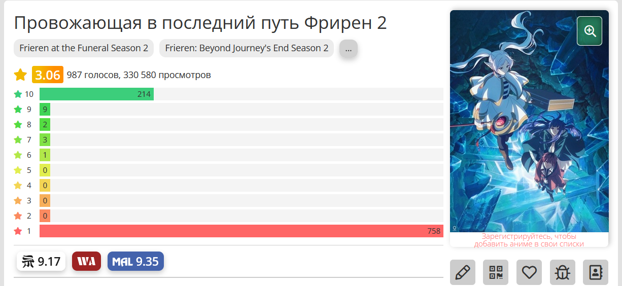 >По поводу оценок, они высокие из-за графона и слегка нестандартного сетапа Люди видимо забыли что аниме ванпанчменом не ограничивается. На его фоне конечно анимация топовая. Но в целом по индустрии она просто нормальная. Читаю щас топик на моле и охуеваю с говноедов
