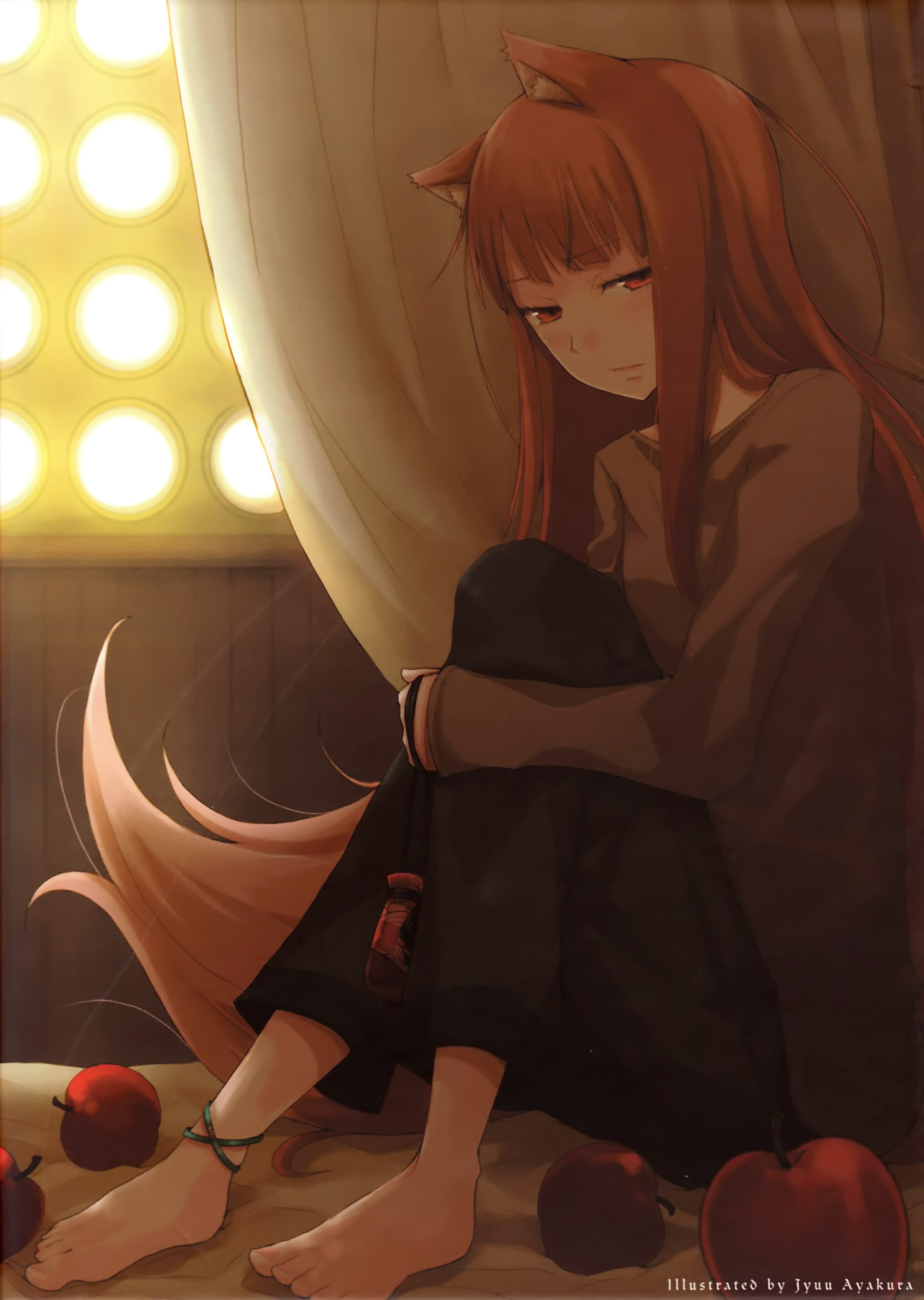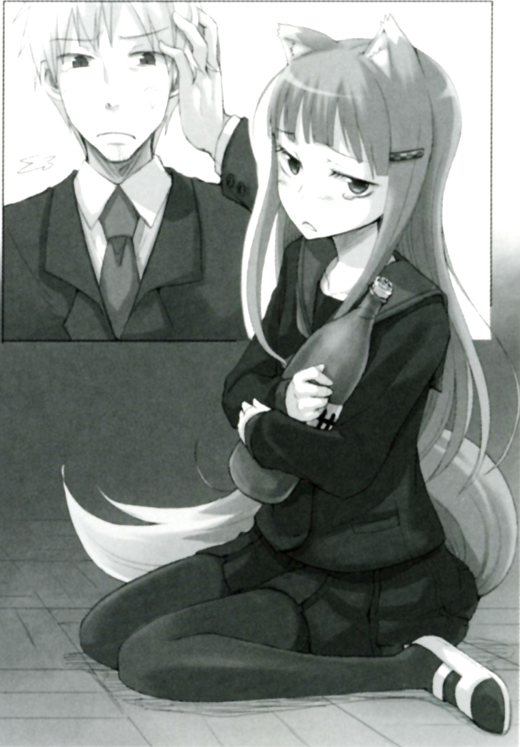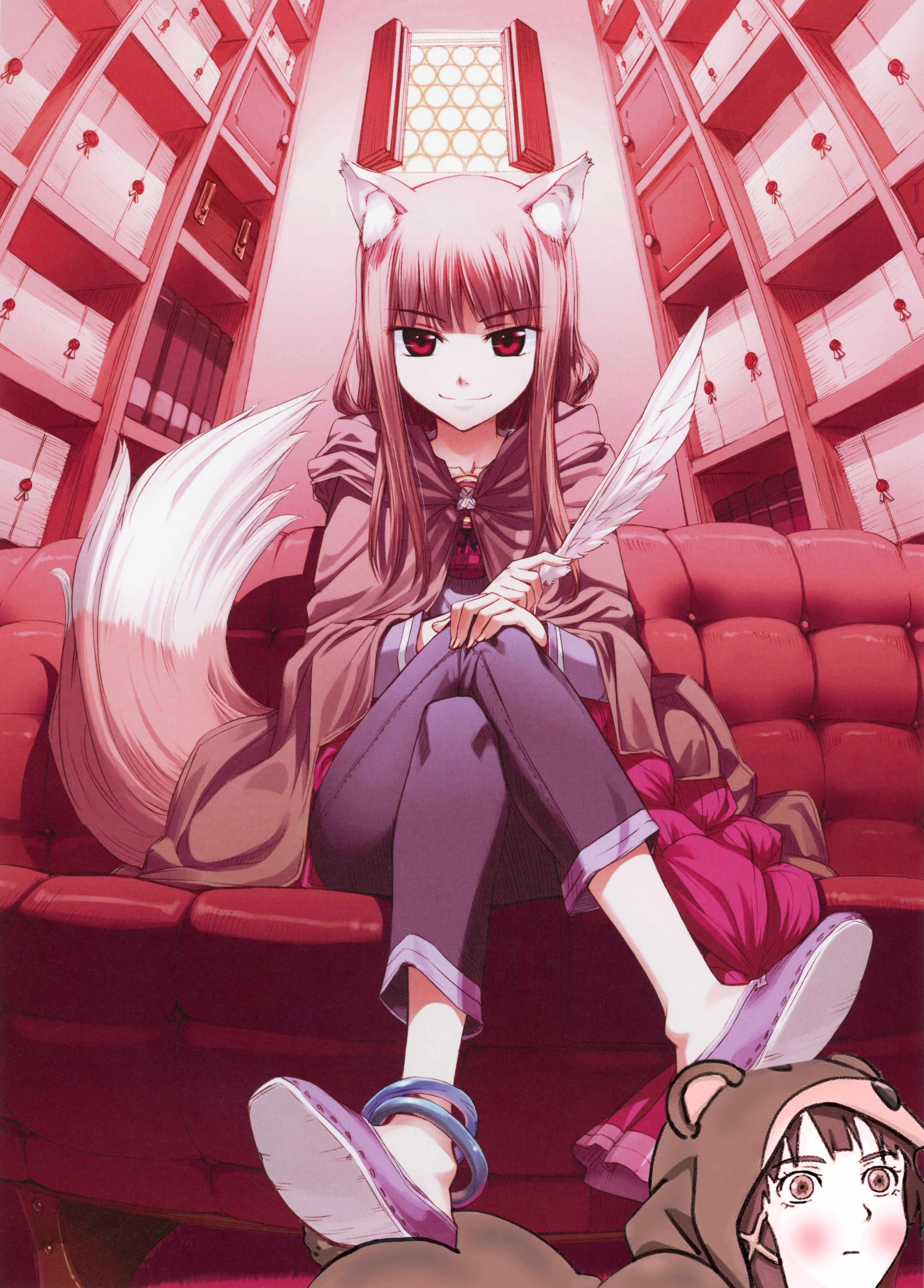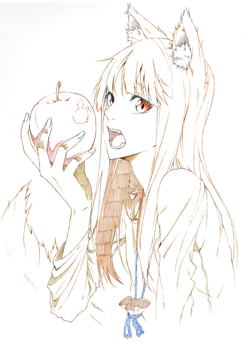 Мне одному кажется, что Хоро выглядит не как волчица? Даже Хасэкура в заключительном слове к первому тому написал: " иллюстрации Аякуры-сенсея были для меня сюрпризом и невероятно понравились". Выходит, он представлял Хоро вовсе не так? Это все не плохо, в конечном счете все довольны остались. Но это не отменяет простой вещи: Хоро выглядит не как волчица, а как помесь белки с лисой.