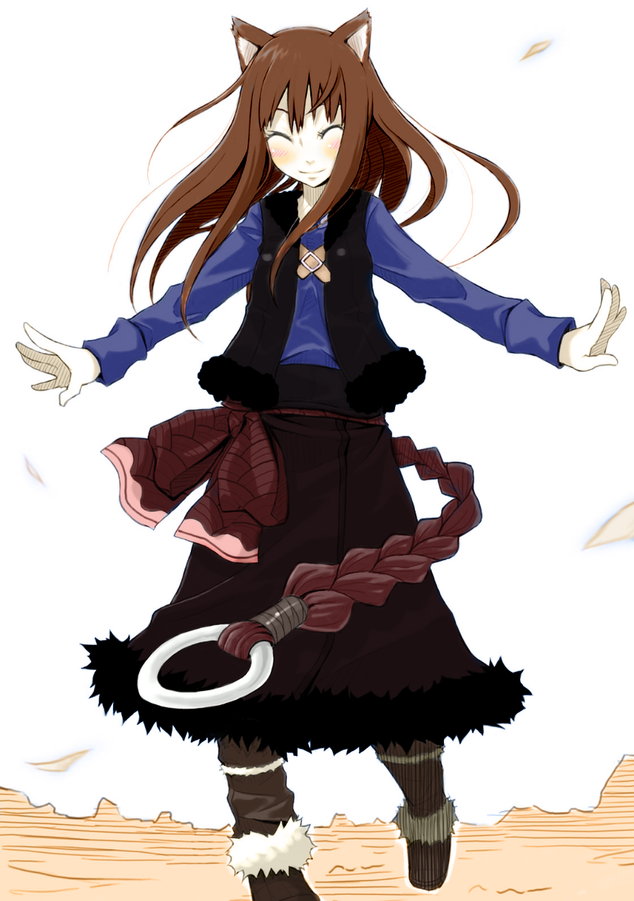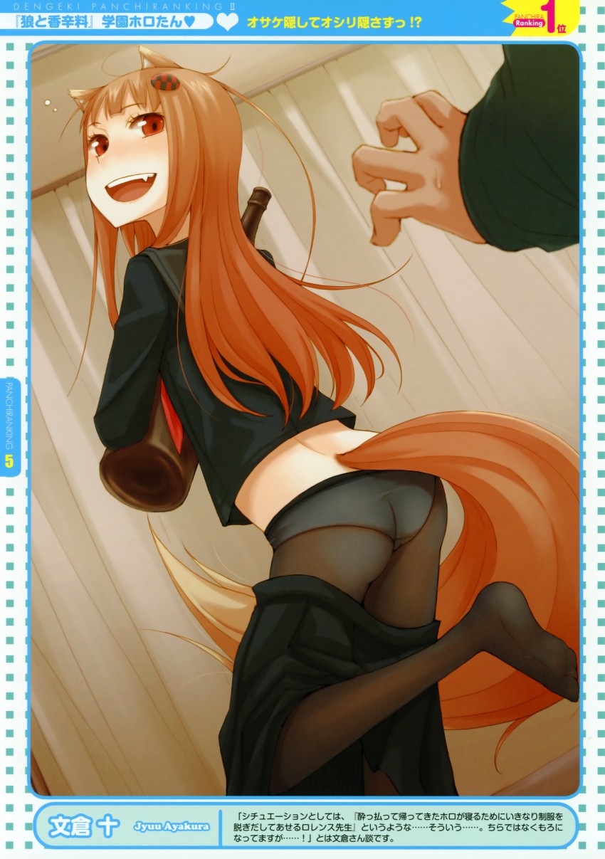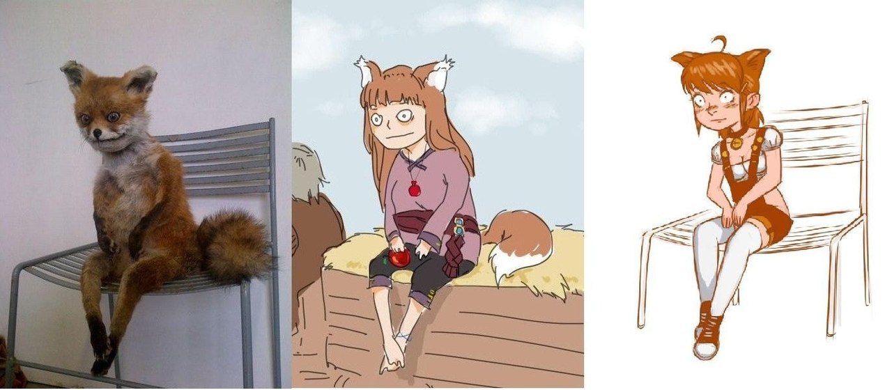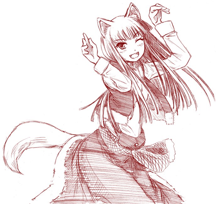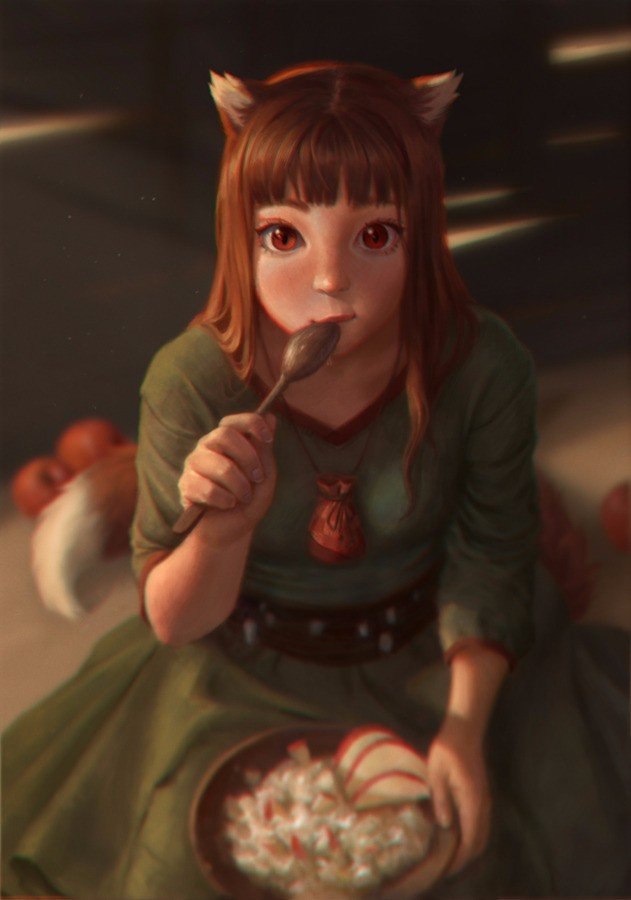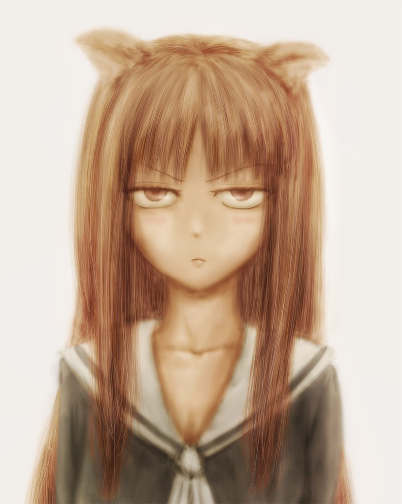 Мне одному кажется, что Хоро выглядит не как волчица? Даже Хасэкура в заключительном слове к первому тому написал: " иллюстрации Аякуры-сенсея были для меня сюрпризом и невероятно понравились". Выходит, он представлял Хоро вовсе не так? Это все не плохо, в конечном счете все довольны остались. Но это не отменяет простой вещи: Хоро выглядит не как волчица, а как помесь белки с лисой.