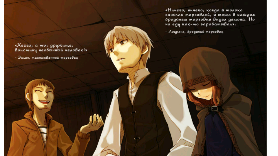 Ну, и к сути вопроса: мне хотелось бы прочитать, так как нет возможности посмотреть, о продолжении. Как я понял, ранобе это и есть то, по чему рисовали аниме. Но по своей сути ранобе это такая же манга, то есть леворукий комикс с аниме-картинками, который надо доставать в магазинах. Есть какие-либо книги о продолжении приключений волчицы (необязательно с Лоуренсом, так как мне довольно-таки интересно узнать о жизни бессмертной и смертного, наеример)?