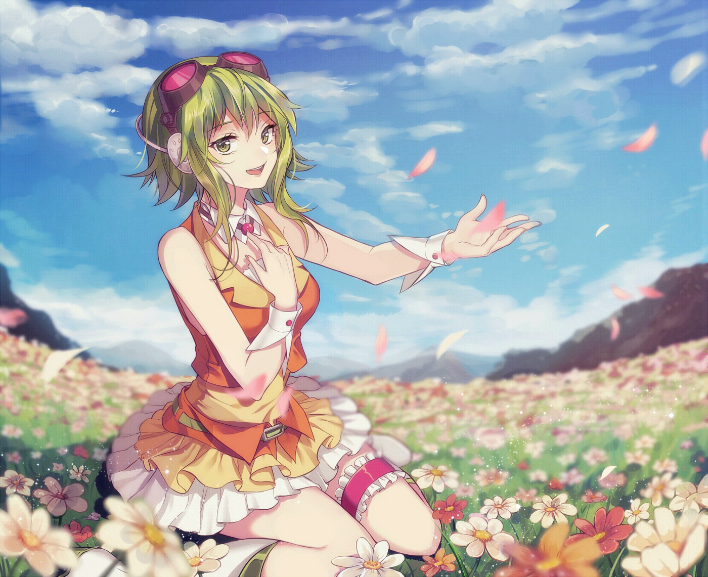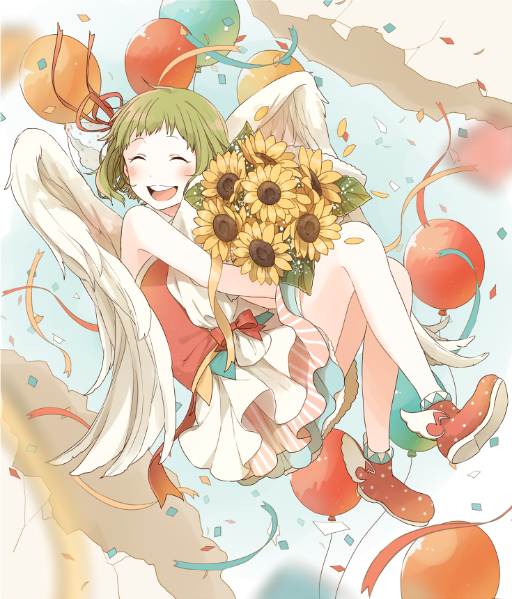 Пошёл читать про подсолнухи и вот что нашёл: Подсолнух - Этот солнечный цветок – главный символ оптимизма, веселья и благополучия. На языке цветов букет подсолнухов, подаренный девушке, означает: «Ты - чудо!», «Я никогда не встречал такой, как ты», «Я горжусь тем, что ты со мной». Подсолнухи — самые солнечные цветы. Букет или композиция из подсолнухов - яркий, оригинальный и незабываемый подарок. Дарить подсолнухи рекомендуется людям творческим и неординарным. Остановите свой выбор на букете подсолнухов, если Ваша цель улучшить настроение, извиниться или произвести положительно впечатление. Гуми очень рада. А ещё она с крыльями, да