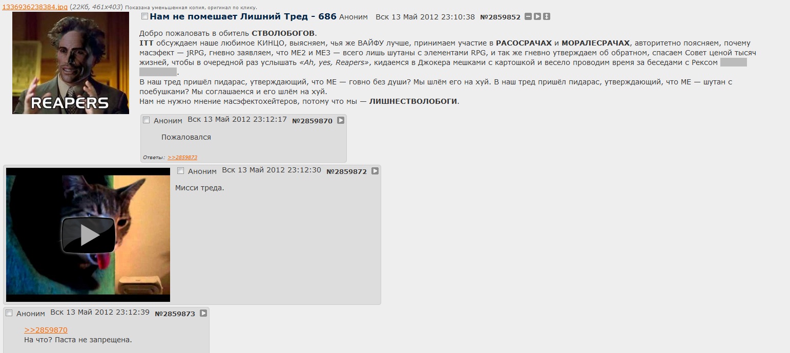 4. Форма жалоб была введена не для того, чтобы жаловаться администрации, что вас заебало видеть одни и те же треды на нулевой. Создайте новый и неповторимый тред, другие скажут спасибо.