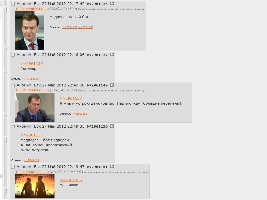 3. Форсеры мочи и прочие борцуны с системой не нужны. Есть другие ресурсы, где вам будут рады. Запрещено обсуждение модерации в любом другом месте, кроме /d/. Бан.