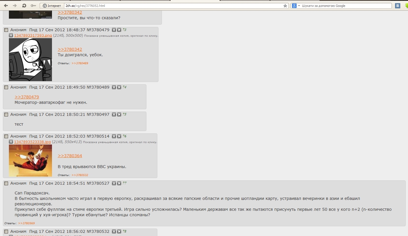 6. Набегать из одного треда в другой и устраивать холивары вида "ВЫ ГОВНО, ИГРА ВАША ГОВНО, А МЫ СТВОЛОБОГИ" запрещено. Бан.