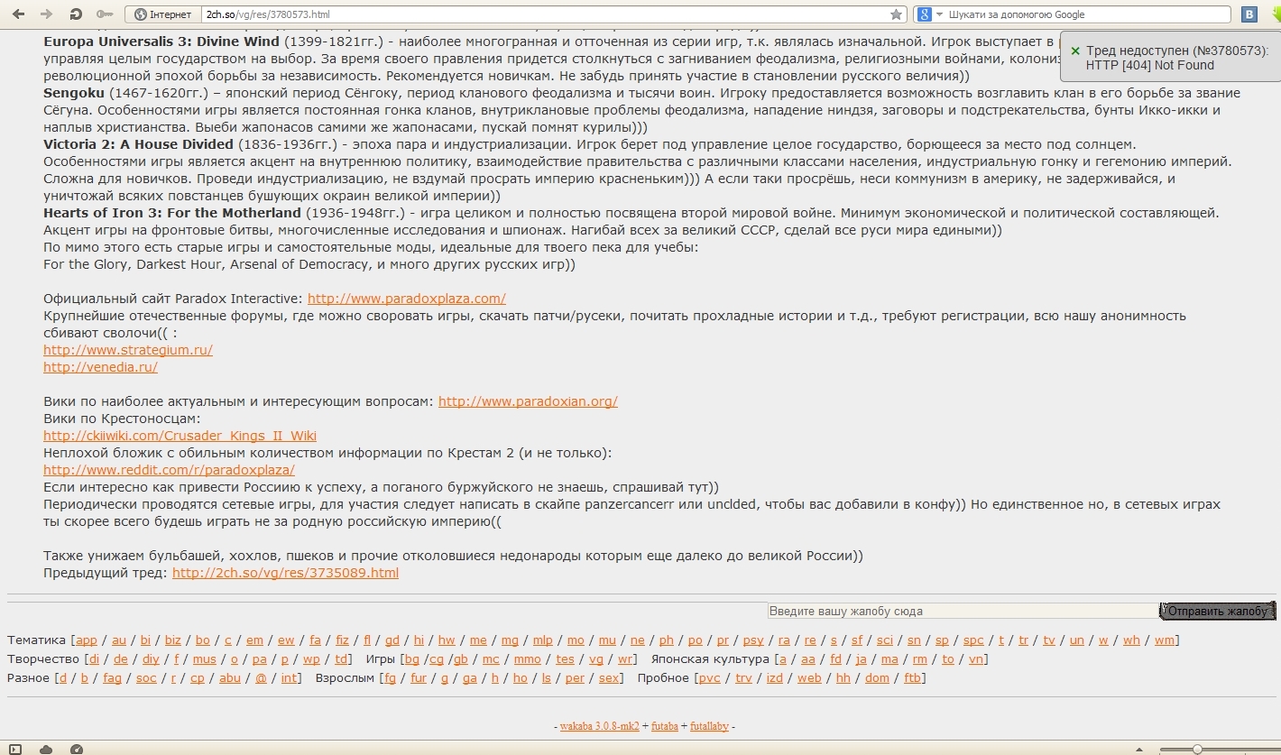 Честно, я пытался бороться с подобными вещами: увеличивал кол-во тредов на нулевой, создавал новые разделы (/mmo/, /mc/, /tes/, /cg/), даже функция скрытия треда была введена, но в /vg/ атмосфера ненамного лучше стала. Единственное, теперь греют душу /mmo/ и /mc/.