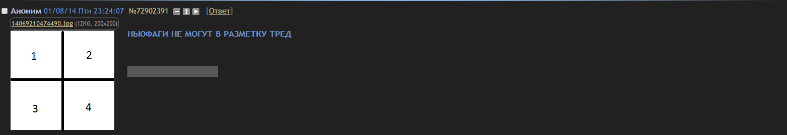 Абу, я уже писал в /d. Можно организацию картинок сделать как на пике? То есть если кто-то грузит четыре картинки, то появляются четыре уменьшенных превью, в той области, где раньше была одна картинка. Просто это ёбаный вырвиглаз, когда четыре пикчи в одном посте с достаточно большим превью, да ещё и размазаны по всей ширине. Пик прилагается. А, ну и да, само собой ответы на посты должны быть внизу. А теперь чини.