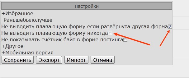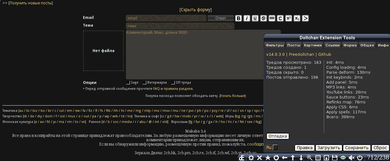 >скрытие/выделение постов по регуляркам, вкл/откл кнопок разметки, формы быстрого ответа, кнопок вверх-вниз и т.д. и т.п. Ого, треть функционала скрипта которая будет допилена через год в то время как сам скрипт теперь не работает.